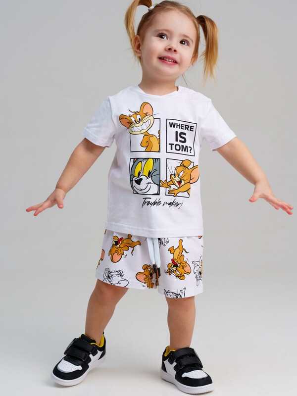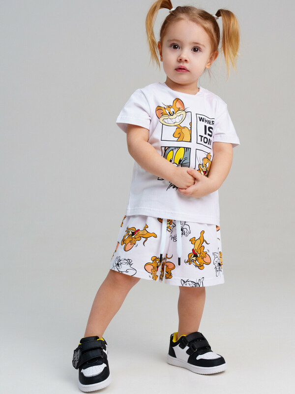 Костюм детский для девочки. Костюм детский для девочки. Футболка с высоким содержанием хлопка 95%. Благодаря наличию эластана в составе ткани изделие проще в уходе и держит форму. Шорты на резинке со шнурком. Модель выполнена из качественного и приятного на ощупь трикотажа.