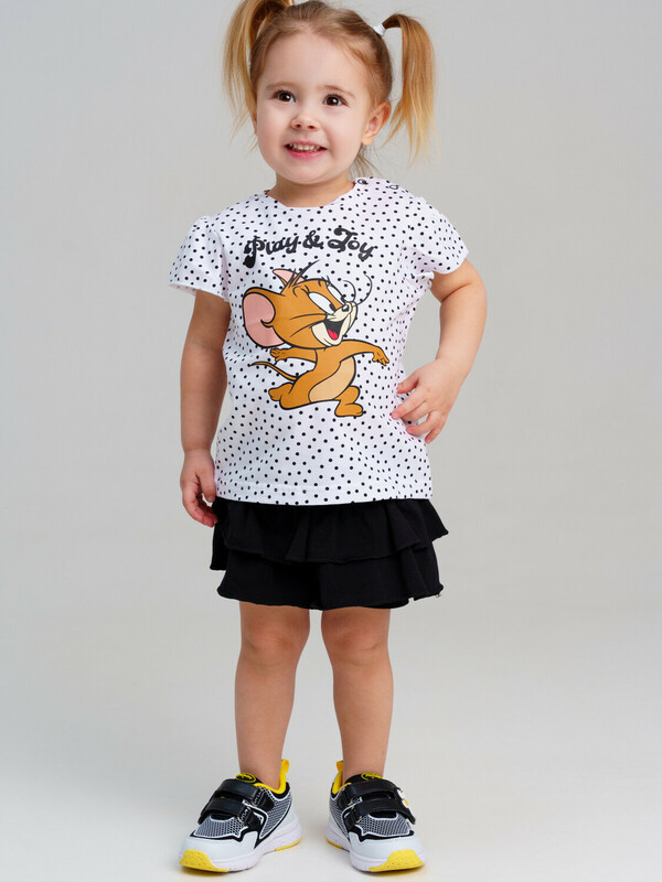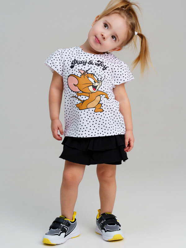 Костюм детский для девочки. Костюм детский для девочки. Футболка с высоким содержанием хлопка 95%. Благодаря наличию эластана в составе ткани изделие проще в уходе и держит форму. Юбка-шорты на резинке. Модель выполнена из качественного и приятного на ощупь трикотажа.