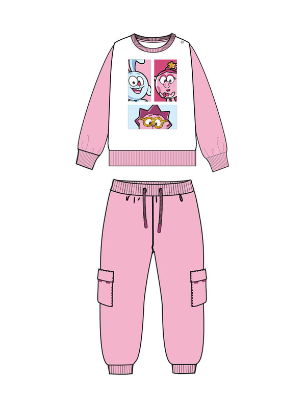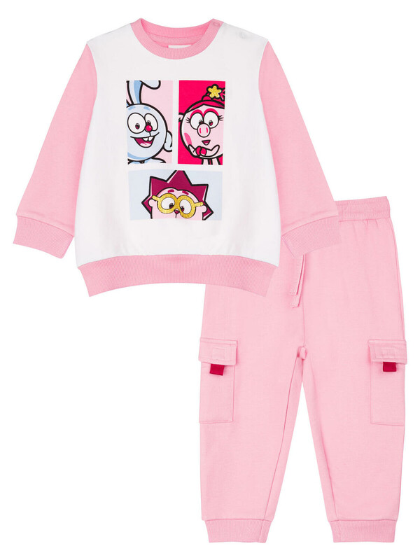 Производитель: PlayToday Костюм детский из футера без начеса для девочки. Модный свитшот с высоким содержанием хлопка. Удобные штаны на резинке со шнурком. Модель из капсульной коллекции СМЕШАРИКИ. Соберите полный образ в едином стиле!