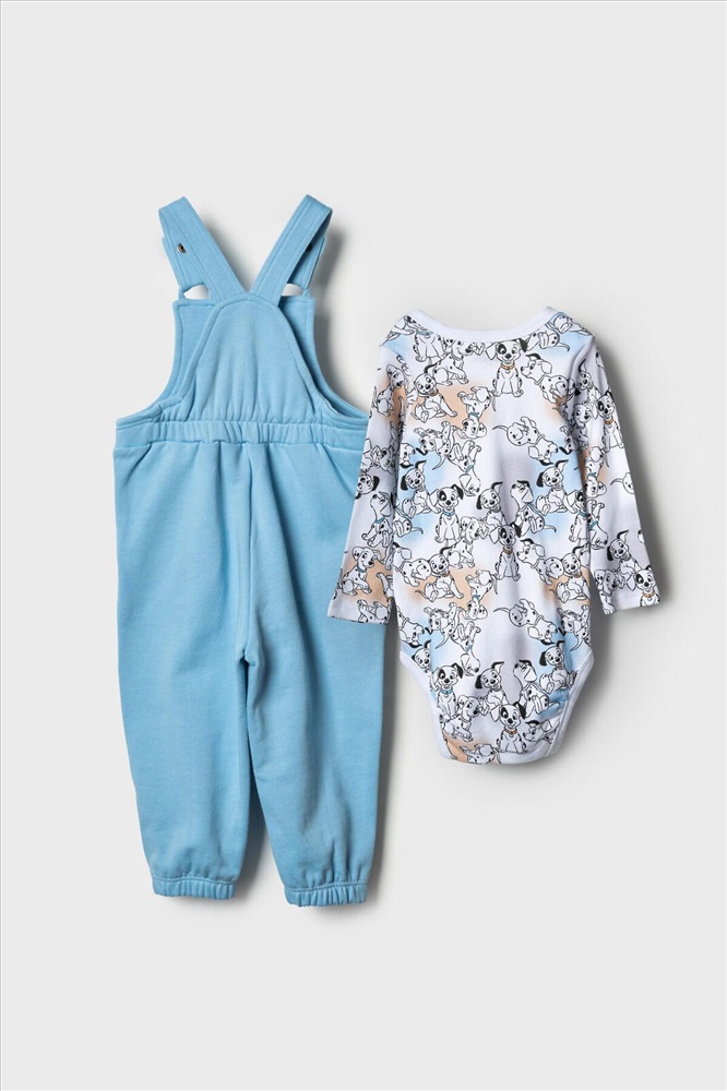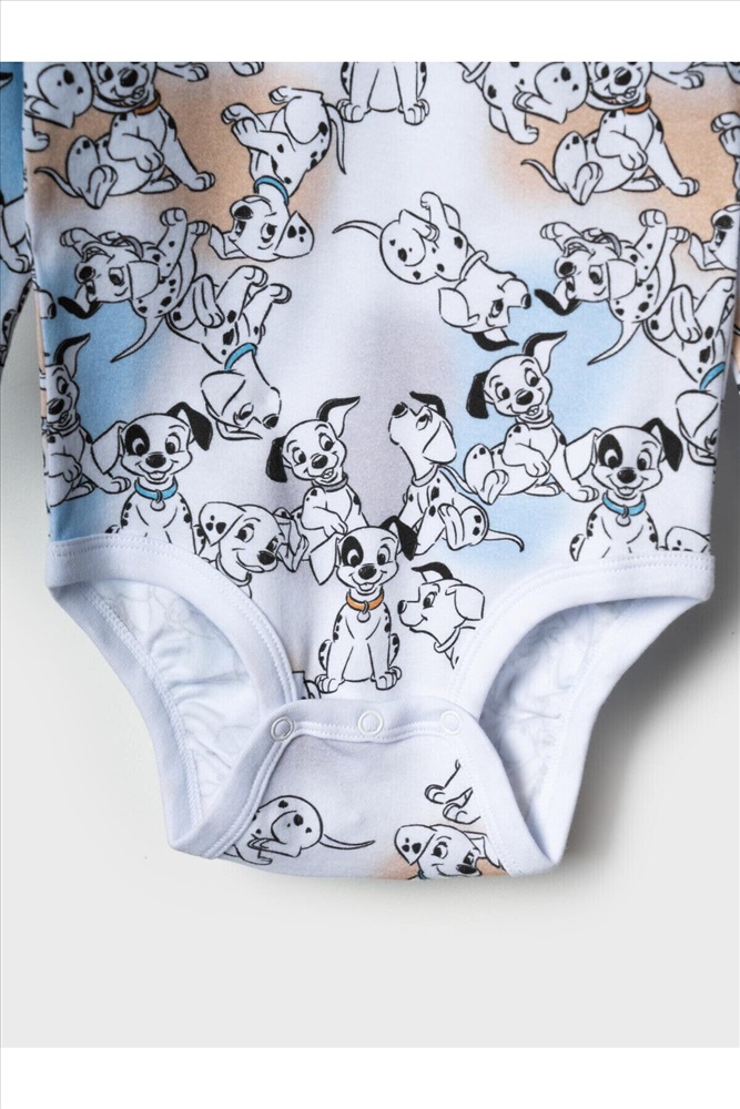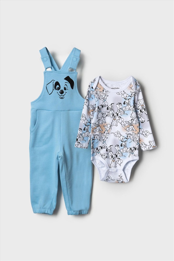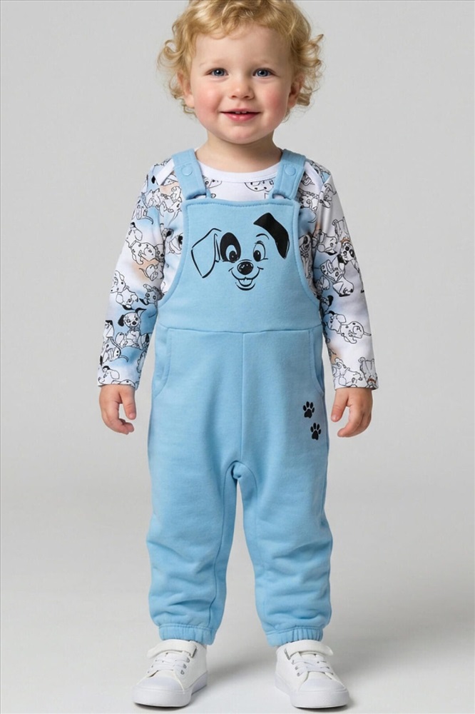 ID товара: 1240172 Состав: 100% хлопок Сезон: Весна/Лето Комплект детский для мальчика. Состоит из двух изделий: боди с длинным рукавом и удобный полукомбинезон. Боди выполнен из мягкого хлопкового трикотажа интерлок с ярким принтом героев «101 далматинец», с застёжкой на кнопках внизу для легкого переодевания. У боди два ряда кнопок - растет вместе с малышом. Полукомбинезон — однотонный хлопковый, на широких перекрестных бретелях, с резинкой на спинке и удобными карманами. На груди размещён крупный рисунок мордочки щенка, а сбоку — милые следы лапок. Комментарии к товару