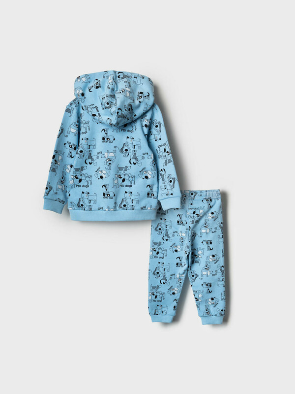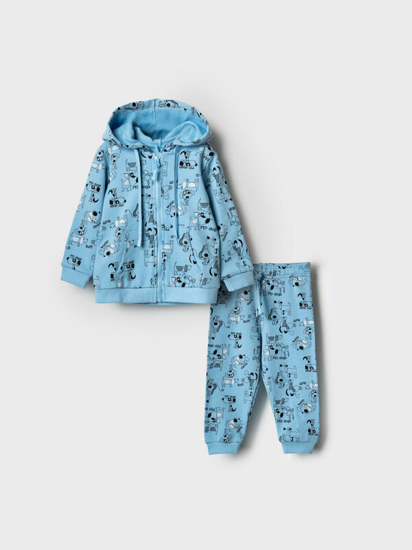 Детский спортивный костюм для мальчика. Комплект выполнен из хлопкового футера и состоит из толстовки на молнии и джогеров на резинке. Толстовка прямого кроя с капюшоном. Капюшон регулируется шнурками. Удобные карманы. Манжеты и пояс выполнены из эластичного трикотажа, благодаря чему изделие хорошо держит форму. Брюки джоггеры — комфортные, с эластичным поясом и шнуром для регулировки посадки. Низ штанин собран на резинку.