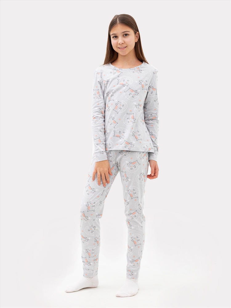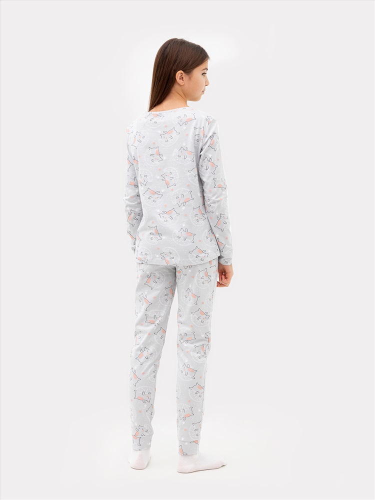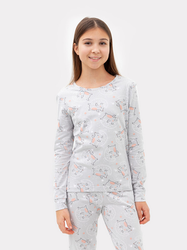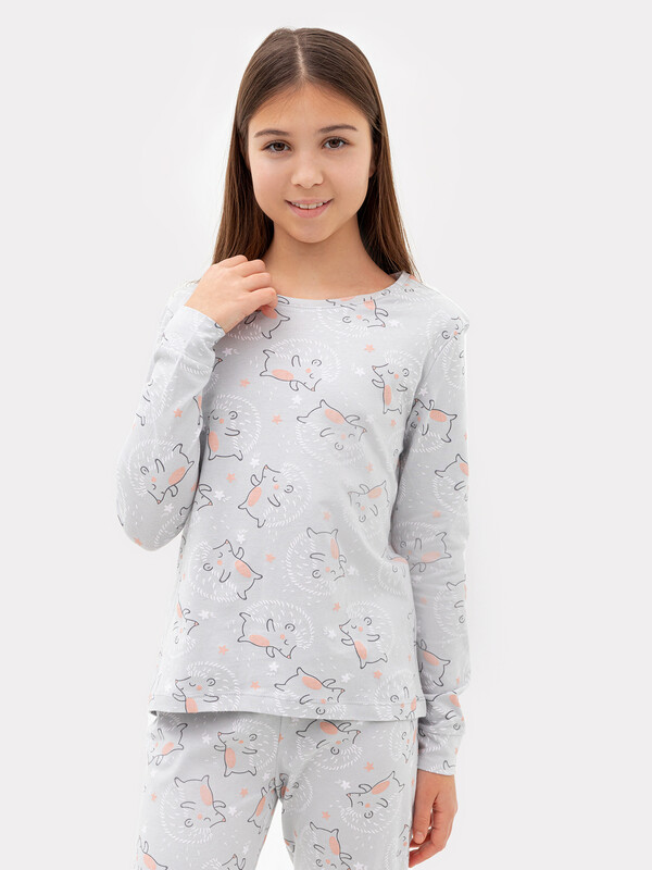 Уютная хлопковая пижама для девочки. Широкие эластичные манжеты на рукавах лонгслива и штанинах брюк. Интересный симпатичный дизайн. Продуманная конструкция. Идеальный вариант для приятного сна и расслабленного отдыха
