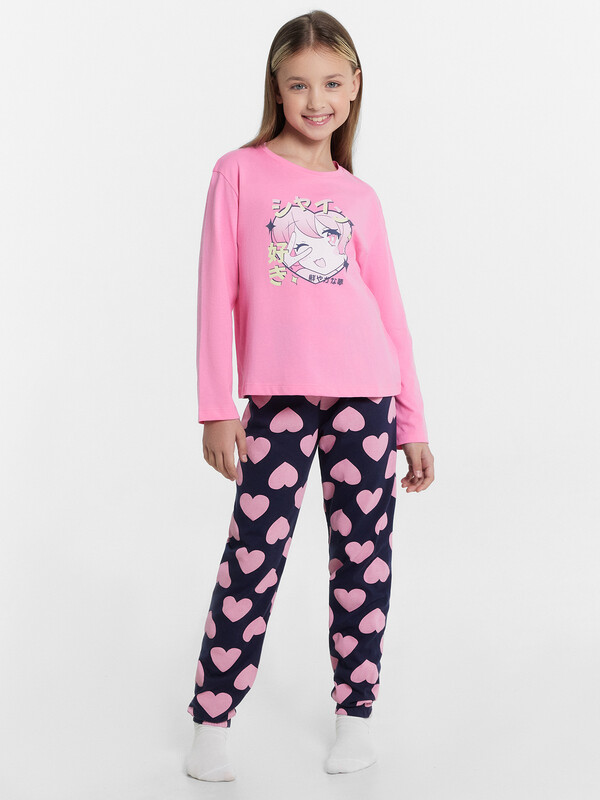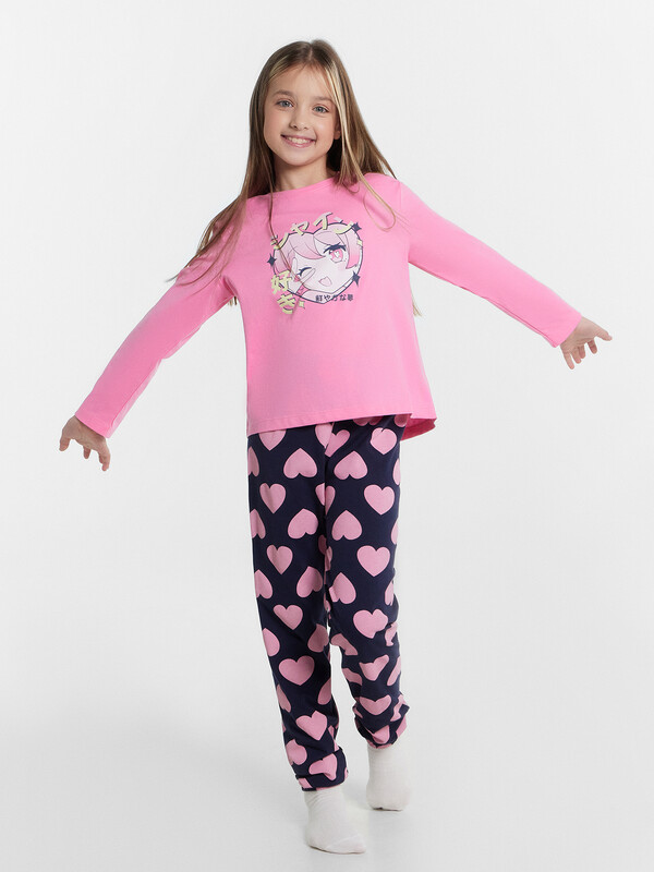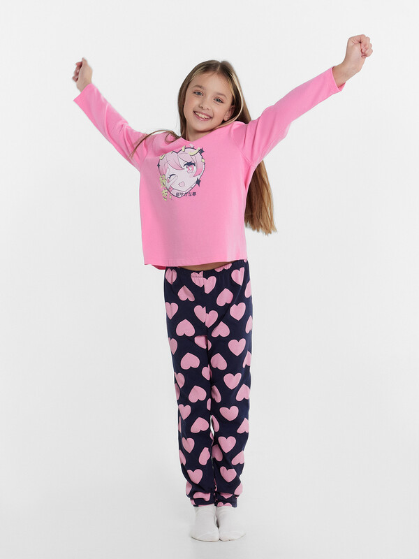 Уютный комплект для девочек из высококачественного хлопка. Модель состоит из джемпера и брюк. Горловина круглой формы. Рукава длинные. Брюки длинные, немного заужены к низу. Натуральное волокно в составе изделия отличается особой мягкостью и приятной на ощупь текстурой, бережно окутывая нежную детскую кожу. Ткань обладает превосходной гигроскопичностью, активно впитывая и отводя влагу, что помогает поддерживать оптимальный микроклимат и предотвращает перегрев. Конструкция пижамы продумана с учетом особенностей детской анатомии. Свободный, не стесняющий движений крой, эластичный пояс обеспечивают максимальную свободу и комфорт во время сна. Широкий размерный и цветовой ряд. Лучший выбор на любой сезон года!