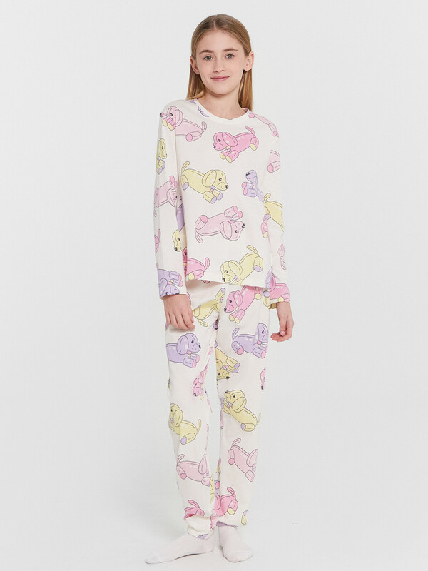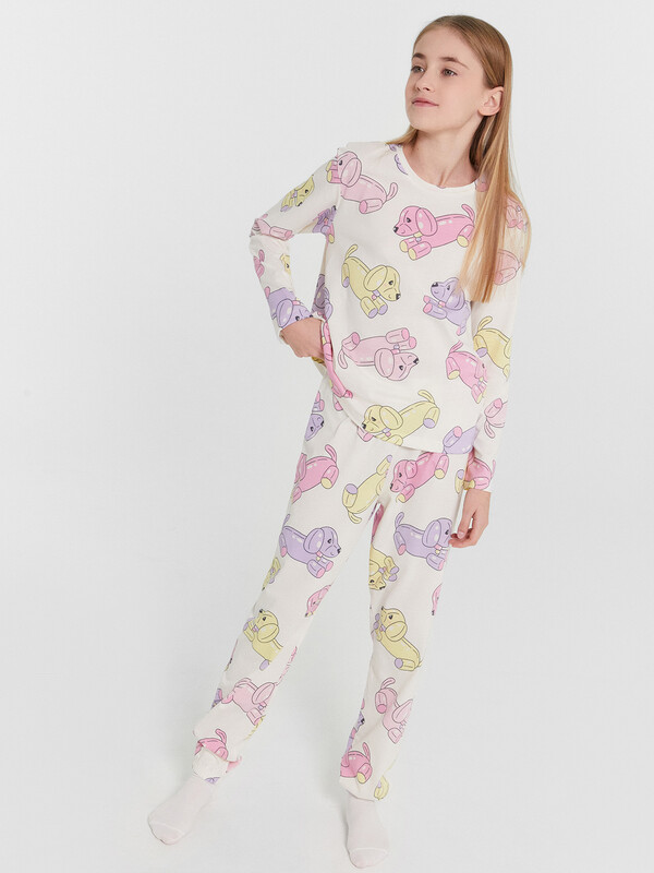 Уютная пижама для девочки с джемпером с длинными рукавами и брюками из высококачественного хлопка. Материал мягкий и эластичный, не сковывает движения маленьких непосед. Такая детская пижама подойдет не только для сна, но и качестве домашней одежды. В коллекции для детей вы сможете найти популярные цвета, а также интересные принты для девочек. Порадуйте своих любимых подарками от Mark Formelle!