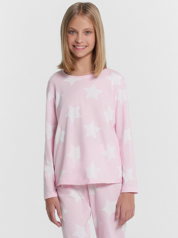 Уютный комплект для девочек из высококачественного хлопка. Модель состоит из джемпера и брюк. Горловина круглой формы. Рукава длинные. Брюки длинные, немного заужены к низу. Натуральное волокно в составе изделия отличается особой мягкостью и приятной на ощупь текстурой, бережно окутывая нежную детскую кожу. Ткань обладает превосходной гигроскопичностью, активно впитывая и отводя влагу, что помогает поддерживать оптимальный микроклимат и предотвращает перегрев. Конструкция пижамы продумана с учетом особенностей детской анатомии. Свободный, не стесняющий движений крой, эластичный пояс обеспечивают максимальную свободу и комфорт во время сна. Широкий размерный и цветовой ряд. Лучший выбор на любой сезон года!