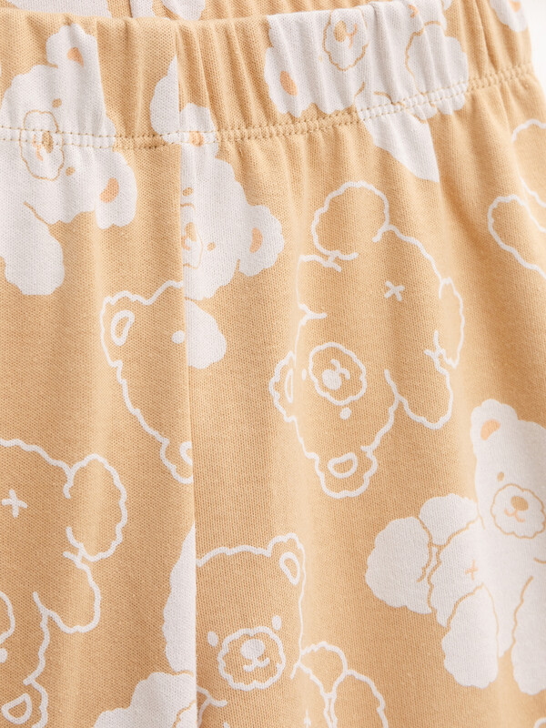 Брюки свободного силуэта. Пояс цельнокроеный, с втаченной эластичной тесьмой. Низ брюк обработан в подгибку с эластичной тесьмой.