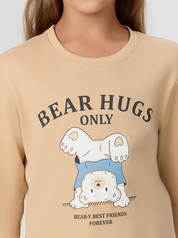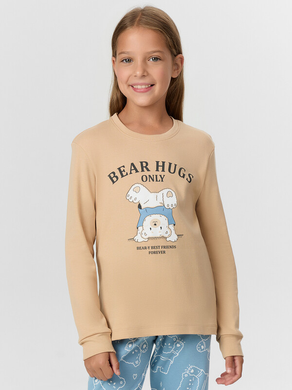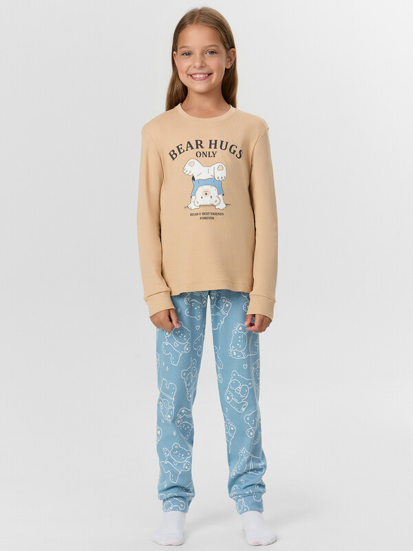 Очаровательный домашний комплект для девочки создан для комфортного отдыха и крепкого сна. В набор входит джемпер свободного кроя с длинными рукавами и удобные брюки прямого силуэта - идеальная пижама для девочки для прохладных вечеров.