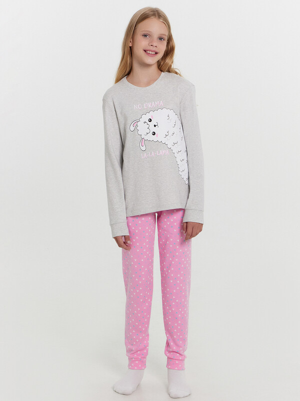 Комплект для девочек из джемпера и брюк.