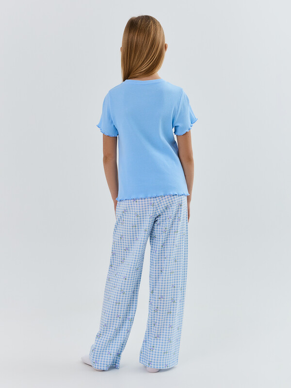 Комплект домашний для девочек с надписью состоит из джемпера и брюк из мягкого хлопка. Он создан для активного отдыха и игр, давая полную свободу движений.