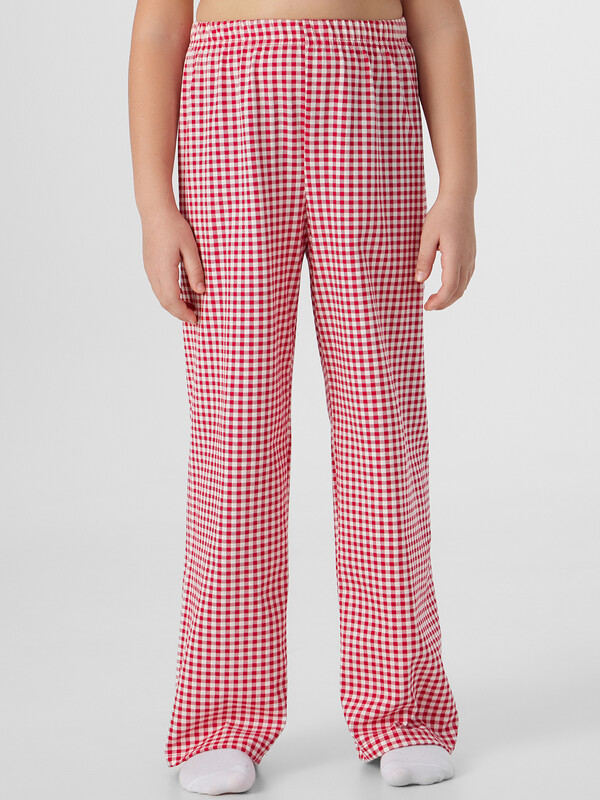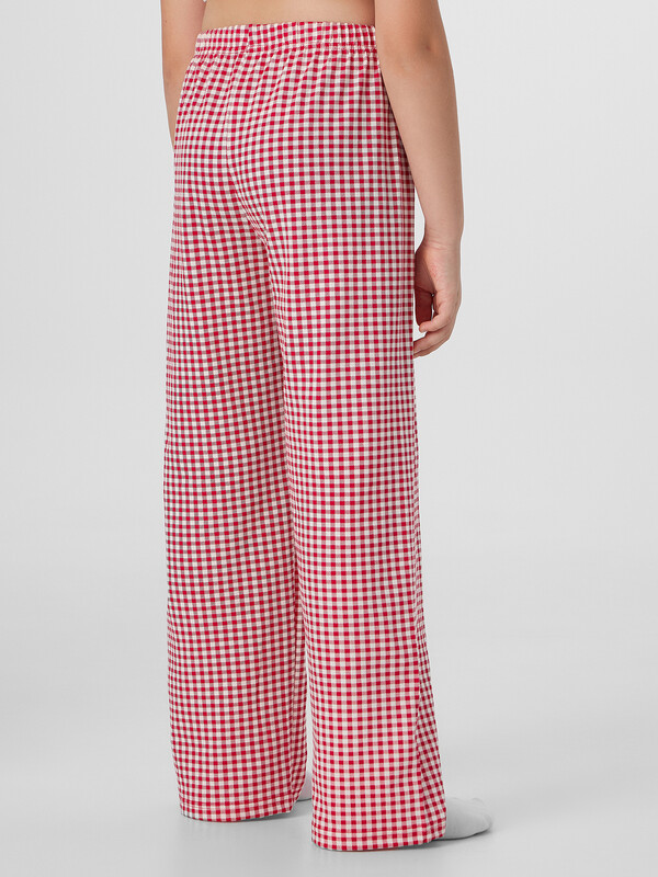 Брюки прямого, свободного силуэта выполнены из полотна трикотажного кулирного