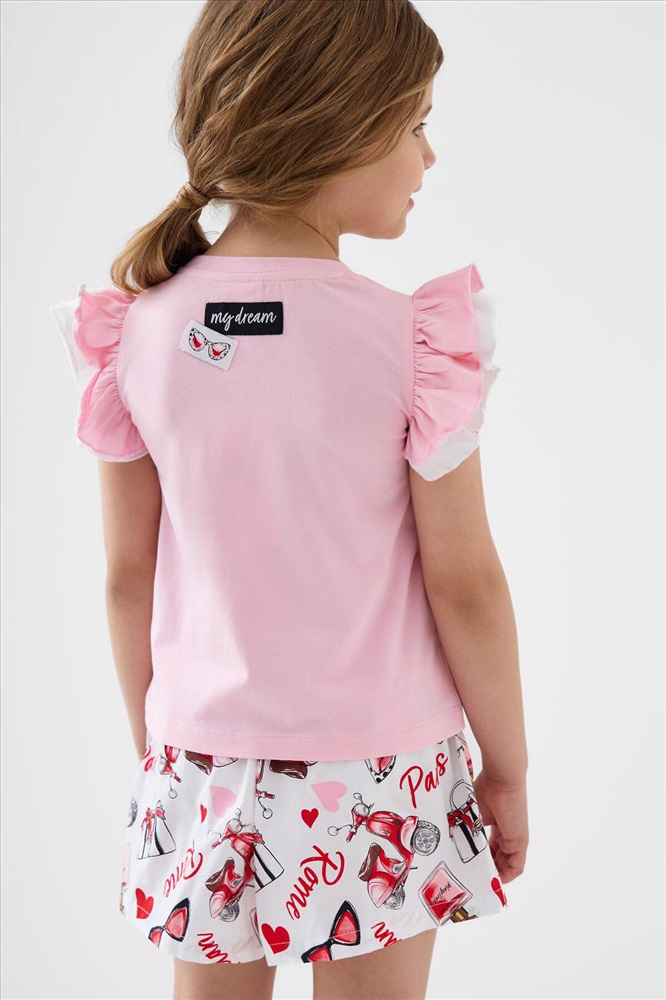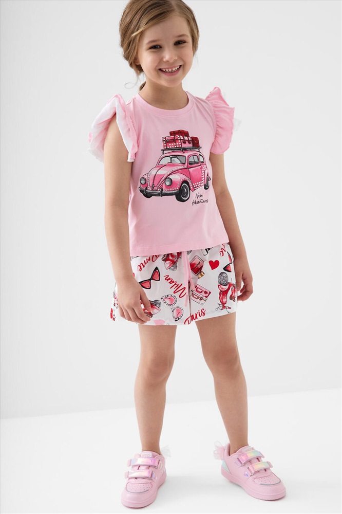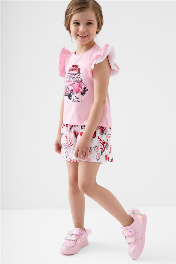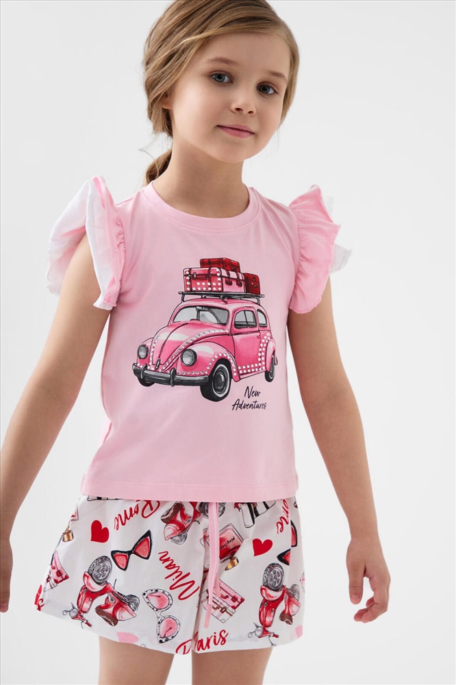 ID товара: 1243357 Состав: Футболка- 95% хлопок, 5% эластан, Шорты- 100% хлопок Сезон: Весна/Лето Легкий детский костюм для девочки. Состоит из футболки с коротким рукавом и шорт. Футболка прямого силуэта, выполнена из мягкого хлопкового трикотажа. Эффектные многослойные рукава с воланами, которые создают нарядный и лёгкий образ. На передней части расположен яркий принт, на спинке — аккуратная декоративная нашивка. Шорты выполнены из хлопковой ткани с ярким принтом. Посадка высокая, пояс на мягкой резинке дополнен декоративным шнурком. Есть удобные боковые карманы. Комментарии к товару