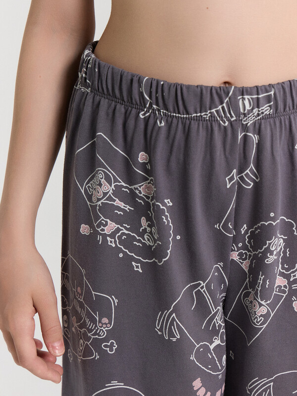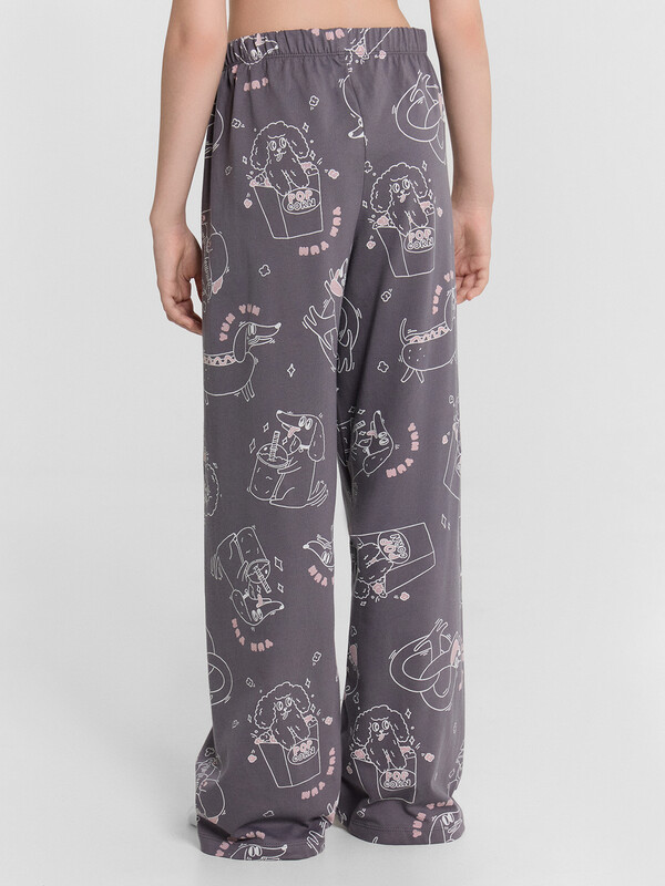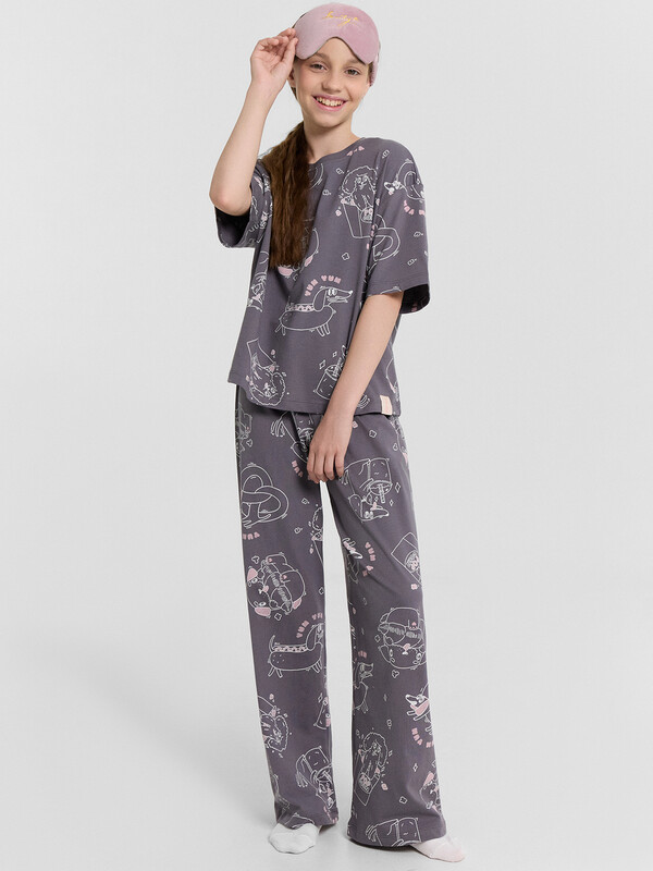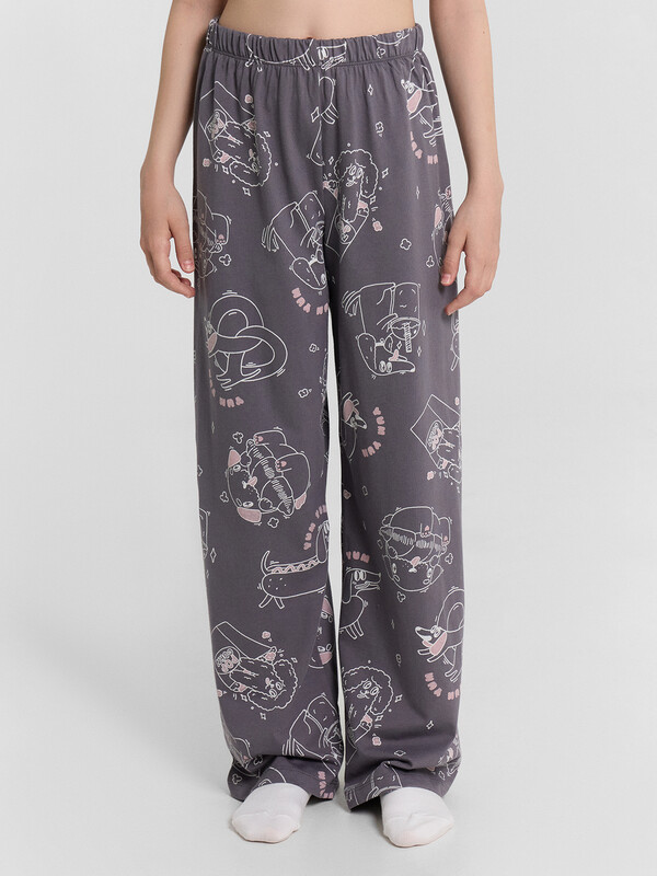 Брюки свободного силуэта. Пояс цельнокроеный внутри с резиной 30RV. Низ брюк в подгибку.