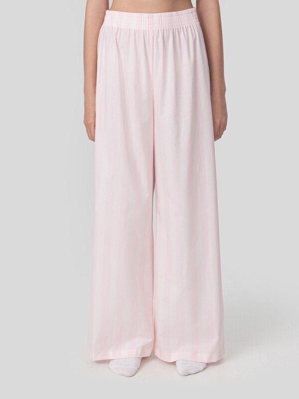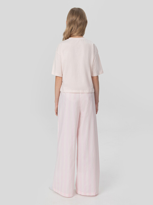 Брюки свободного силуэта. Пояс цельнокроеный внутри с резиной 40RV. Низ брюк в подгибку.