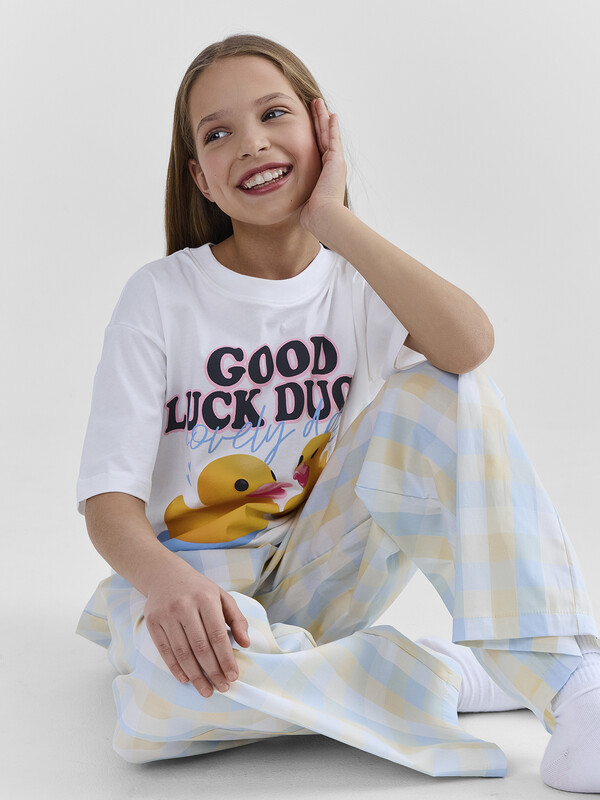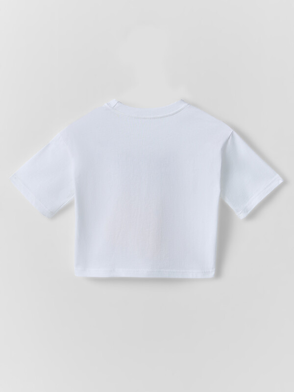 Футболка свободного силуэта. Горловина круглой формы, обтачка из рибаны. Рукава втачные свободные, линия плеча слегка спущена. Низ рукавов и футболки в подгибку.