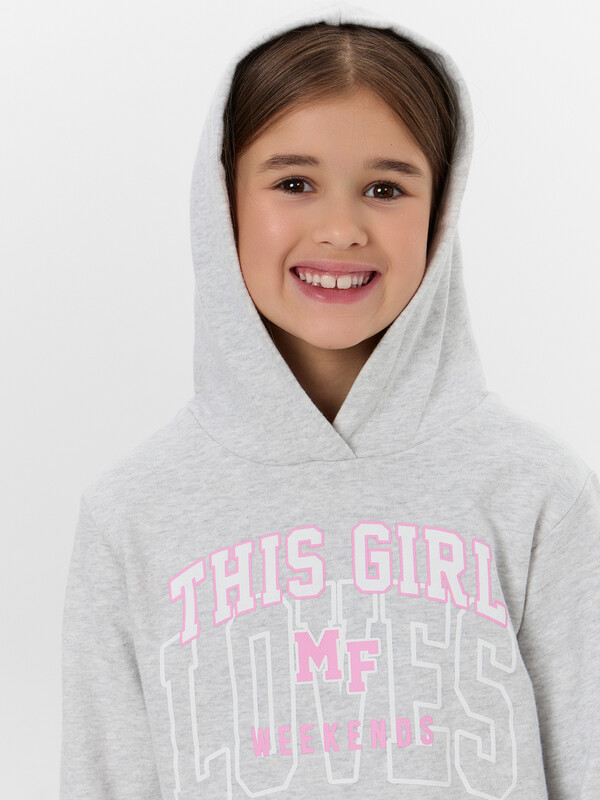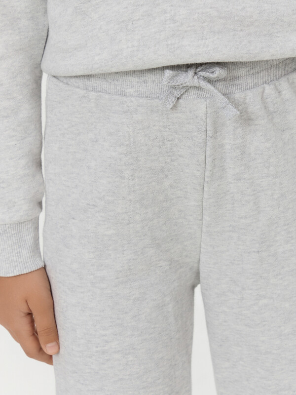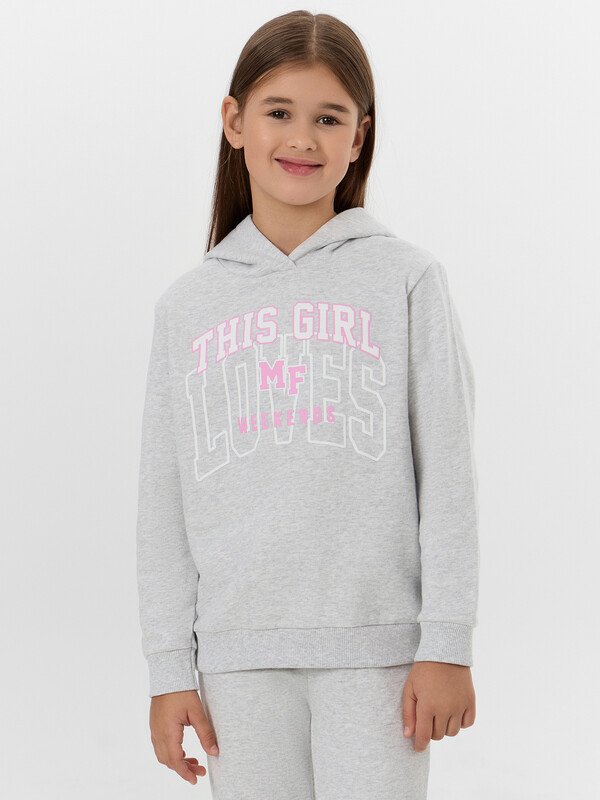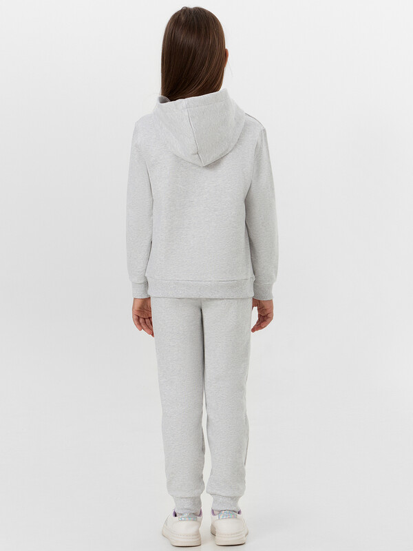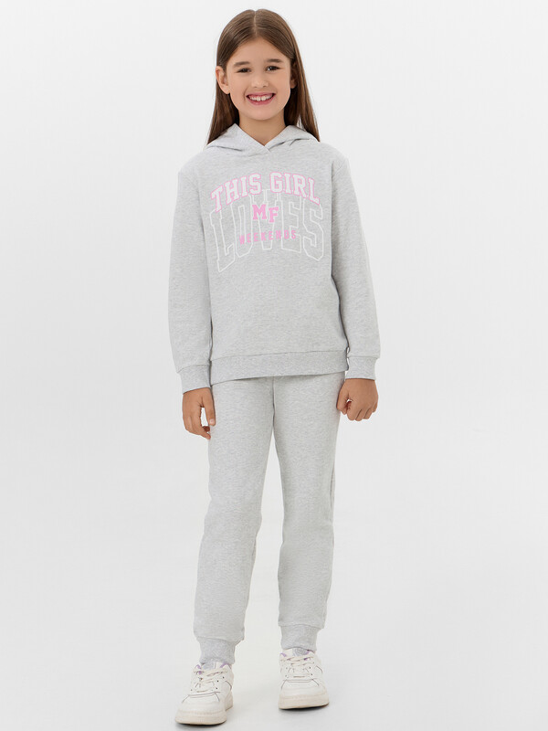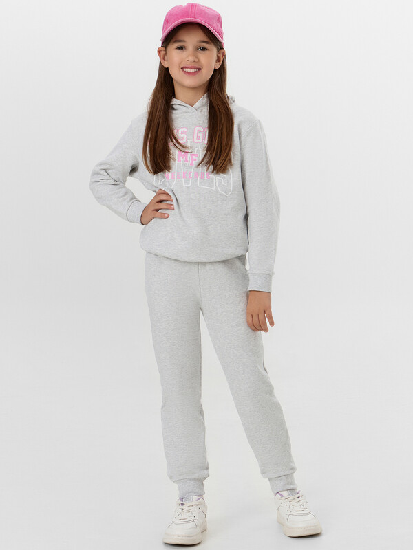 Комплект для самых модных девочек. Выполнен из трикотажного футера без подчеса. Анорак свободного силуэта с капюшоном, спущенной линией плеча, манжетами и поясом из рибаны. Брюки прямого силуэта, с резинкой и регулировочным шнурком в поясе, на манжетах. Уютный комплект!