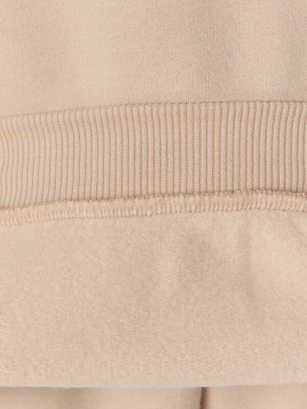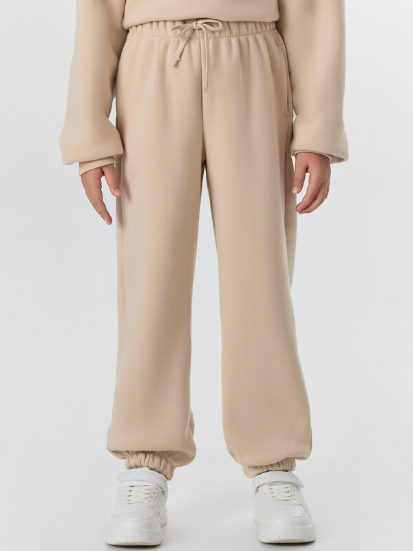 Брюки- джогеры прямого силуэта с карманами в боковых швах. Пояс цельнокроеный с внутренней эластичной тесьмой 40RV. С внешней стороны пояса пробиты петли и втянут шнур 8PXС-2. Низ изделия обработан швом в подгибку, внутрь застрочена эластичная тесьма 30RV.
