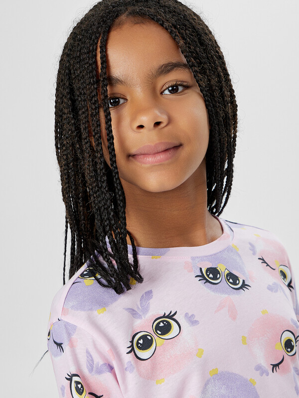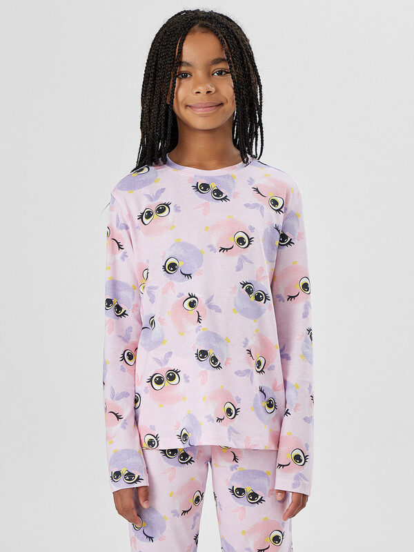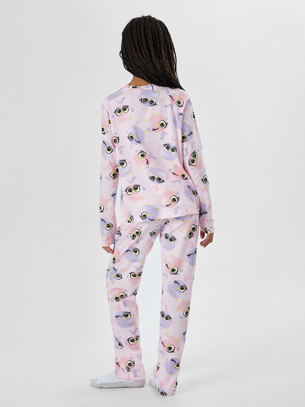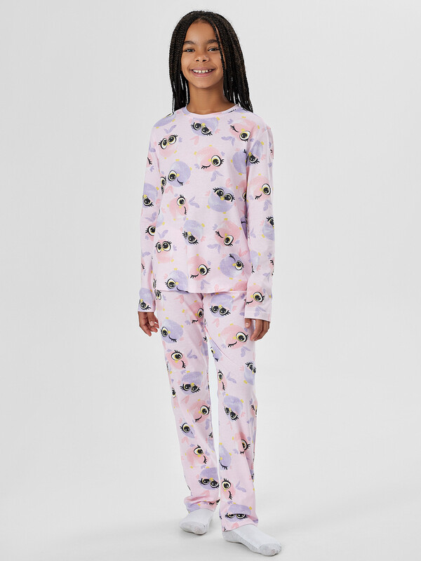 Джемпер с аккуратной круглой горловиной удобно надевается и мягко облегает тело. Цельнокроеные перед и спинка без лишних швов не раздражают кожу, а длинные рукава и аккуратно подогнутые края выглядят опрятно и сохраняют форму после стирок. Брюки прямого кроя с широкой эластичной резинкой в поясе обеспечивают комфортную посадку без давления на животик. Мягкая дышащая ткань не стесняет движений, позволяя свободно играть перед сном и удобно устроиться в кровати. Комплект идеально подходит для спокойного сна, домашнего отдыха и уютных семейных вечеров. Качественные материалы сохраняют форму после стирок, а милый дизайн с забавными зверюшками обязательно понравится вашей малышке. 100% хлопок Комментарии к товару