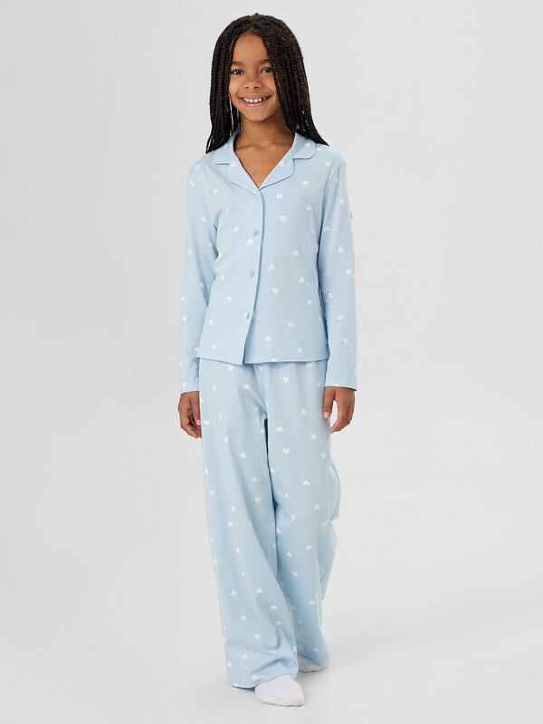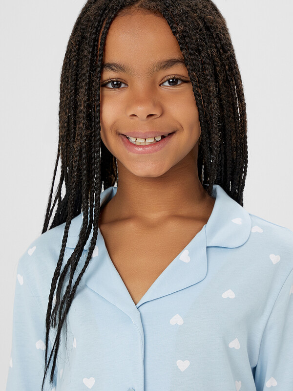 Подарите своему ребенку комфорт и очарование с домашним комплектом, созданным для приятного отдыха и активных домашних игр. В комплект входят рубашка и брюки, выполненные из мягкой хлопковой кулирки — натурального материала, который нежно заботится о коже и обеспечивает отличную воздухопроницаемость. Рубашка прямого силуэта с отложным воротником выглядит аккуратно и стильно. Спущенное плечо и длинные рукава добавляют свободы движений, а центральная застежка на пуговицы делает модель удобной и практичной. Брюки слегка расширены к низу, что придает образу легкость и современность. Эластичный пояс мягко фиксирует посадку, не сдавливая животик, а низ брюк аккуратно застрочен швом в подгибку. Этот комплект — идеальный выбор для дома: он сочетает в себе комфорт, качество и милый стиль. Подходит для отдыха, игр и уютных вечеров.
