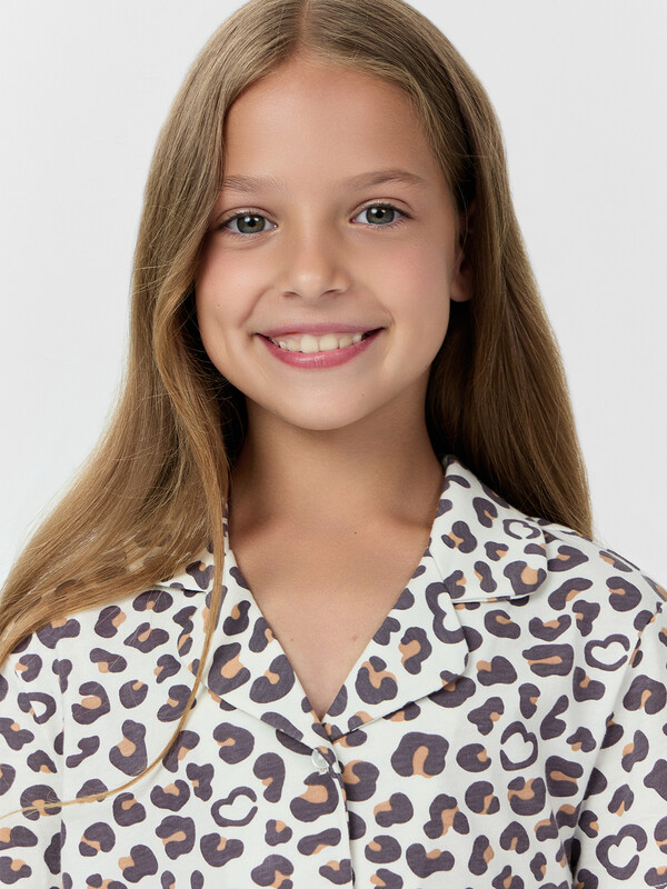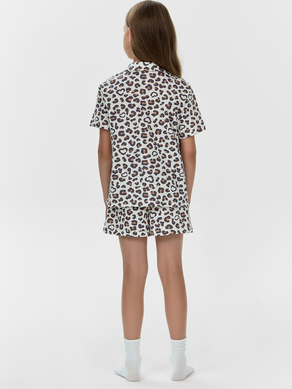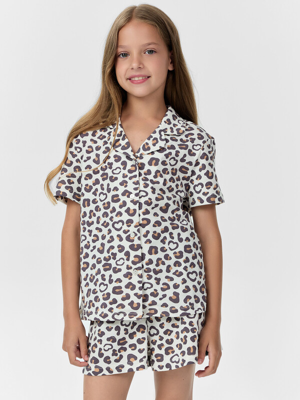 Очаровательная пижама для девочек включает в себя рубашку и шорты, выполненные из нежной хлопковой кулирки. Рубашка прямого силуэта с отложным воротником и слегка спущенным плечом создает стильный и расслабленный вид комплекта. А короткие рукава и центральная застежка на пуговицы добавляют удобства и функциональности. Шорты слегка расширены к низу и имеют пояс с эластичной тесьмой внутри, что гарантирует удобную посадку. Этот комплект идеально подходит для сна и домашнего отдыха, обеспечивая максимальный комфорт и свободу движений. Отличный выбор для маленьких ценительниц уюта и стиля!
