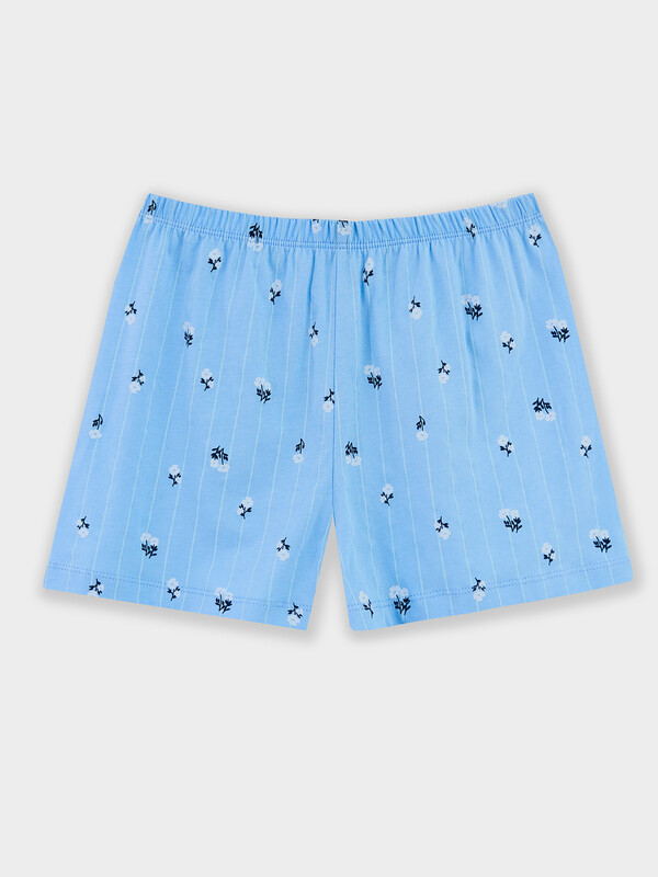 Шорты слегка расширены к низу. Пояс цельнокроеный с эластичной тесьмой внутри. Низ застрочен швом в подгибку.