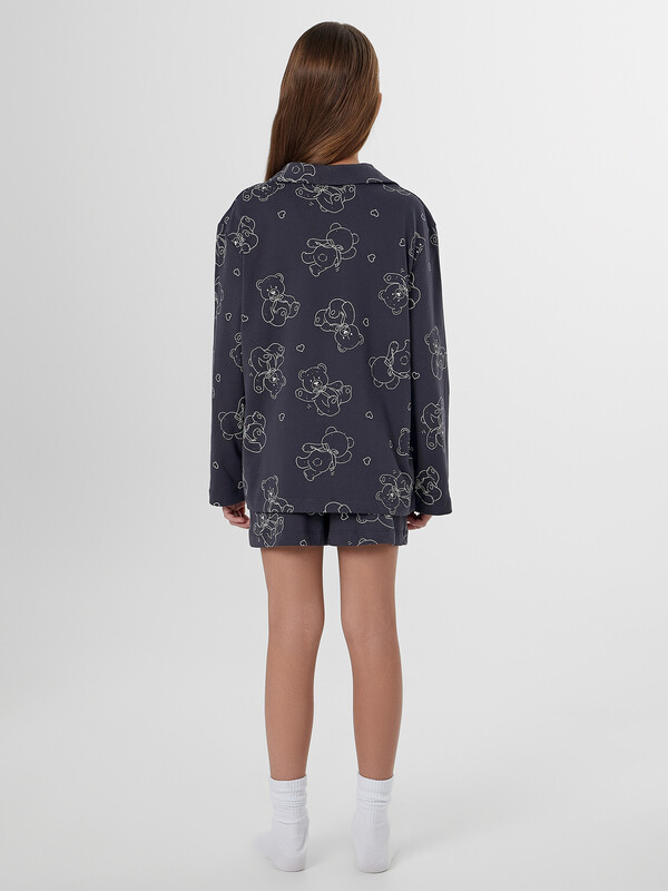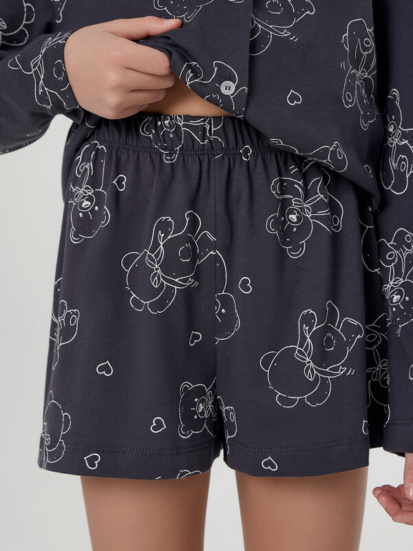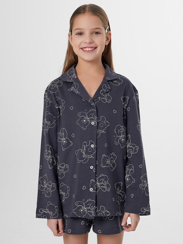 Пижама для девочек с милым принтом — это уютный комплект для сладкого сна и отдыха. Он состоит из рубашки свободного кроя и удобных шортов из мягкого хлопка.
