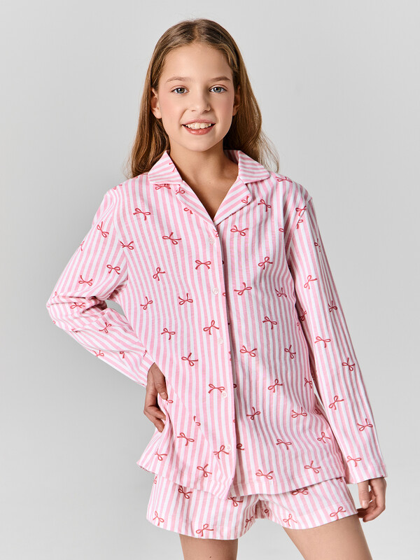 Комплект для девочек состоит из рубашки и шортов.