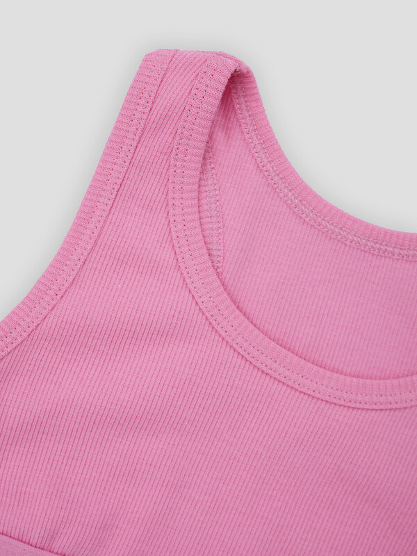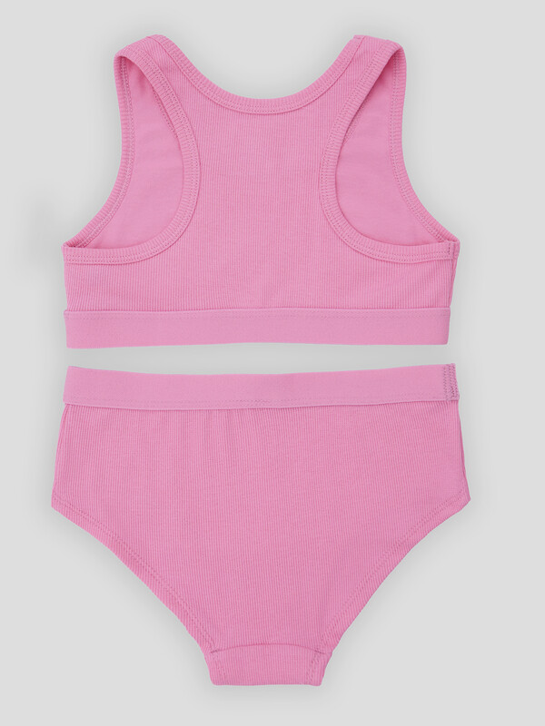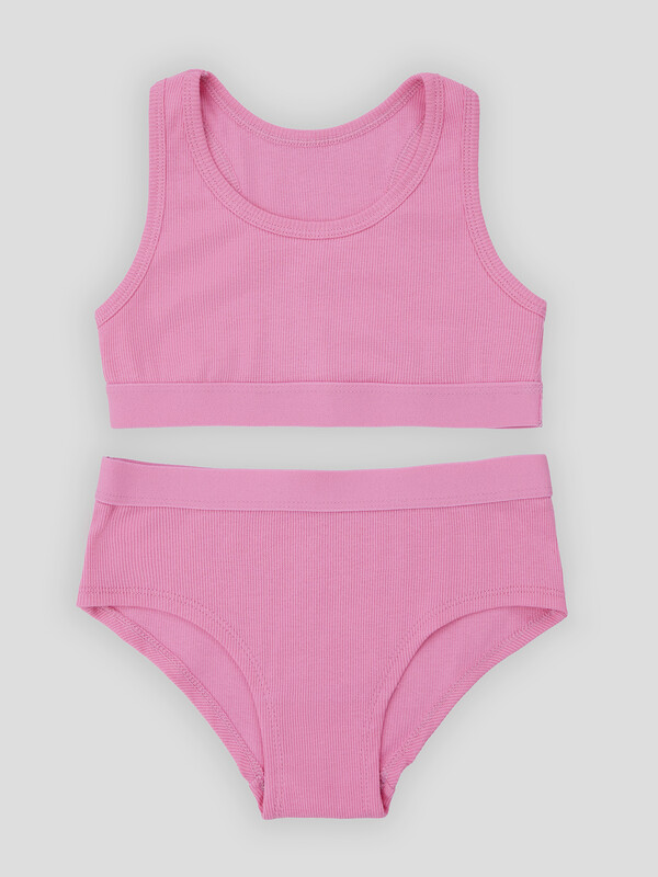 Комплект состоит из топа и трусов. Топ с боковыми швами. Горловина круглой формы. Спинка фигурная, как в спортивном топе. Подкладка по внутренней части переда из кулирного полотна SJ-6 (SJ-009.01.170),95% хлопок; 5% эластан , 180 см, 170 гр/м?. Горловина и пройма окантованы бейкой из основного полотна. По нижнему срезу топа настрочена эластичная тесьма (тесьма жаккард JT1-25), ширина - 25 мм.