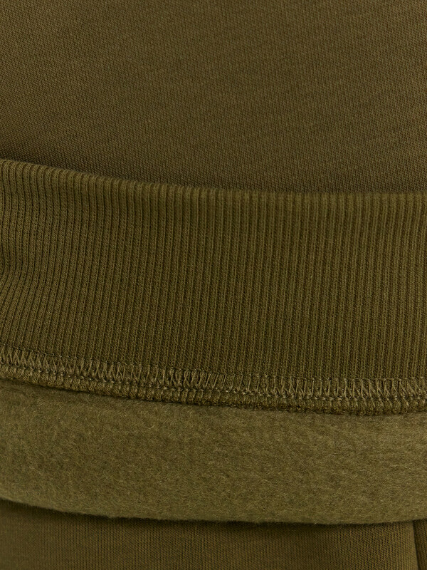 Джемпер свободного силуэта. Рукава длинные, втачные. Линия плеча спущена. Плечевой шов смещен вперед. Горловина круглой формы c окантовкой из трикотажного полотна рибаны. По низу рукавов манжеты из трикотажного полотна рибаны.