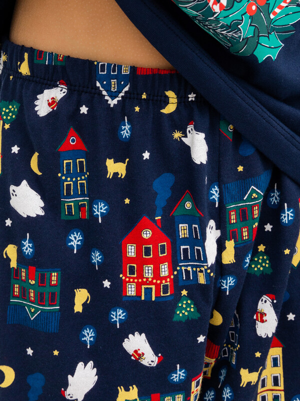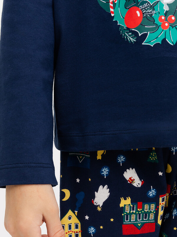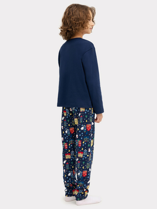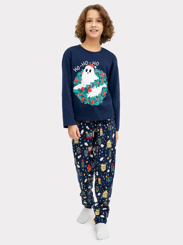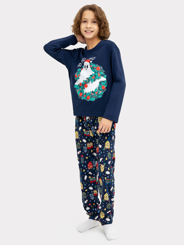 Горловина круглой формы с притачной обтачкой из основного полотна. Рукава длинные втачные. Перед и спинка цельнокроеные. Низ джемпера и рукавов обработан швом в подгибку. Брюки длинные, немного заужены к низу. Пояс цельнокроенный с эластичной тесьмой внутри. Низ брюк застрочен с эластичной тесьмой внутри. 100% хлопок Комментарии к товару