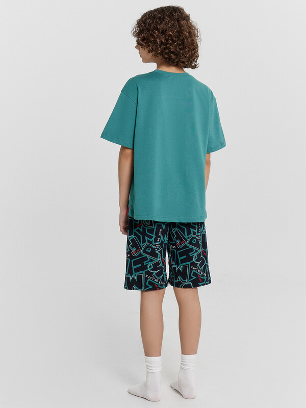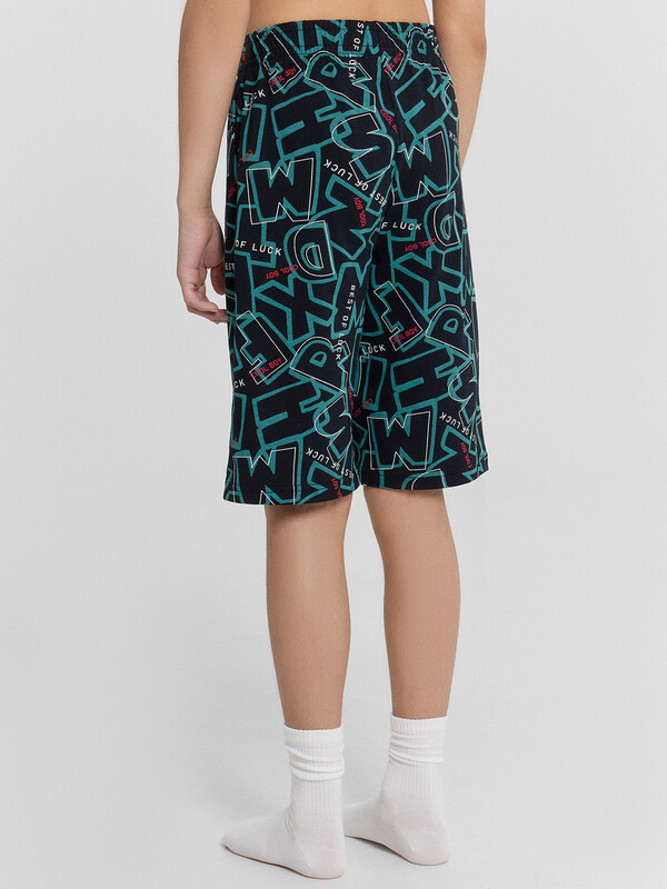 Шорты ниже колена, свободного силуэта с высокой посадкой на талии. Спереди карманы с отрезным бочком. Пояс цельнокроеный внутри с резиной 40RV. Низ шор в подгибку.