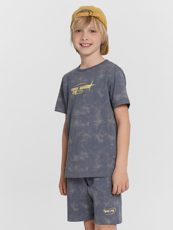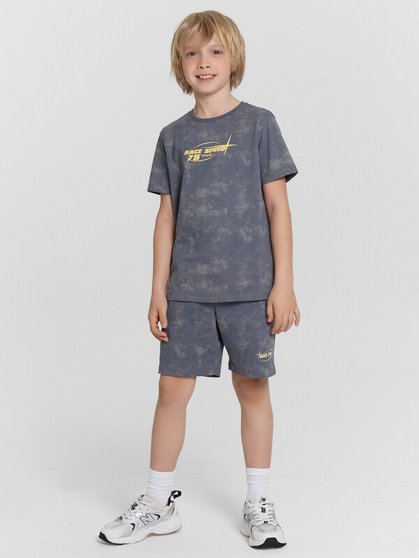 Этот комплект для мальчиков — практичный и стильный выбор для активного и комфортного отдыха! Футболка из трикотажной кулирки имеет прямой и свободный силуэт, который не сковывает движений, обеспечивая свободу и удобство. Круглая горловина, обработанная обтачкой из рибаны, сохраняет форму и не натирает кожу. Короткие рукава и обработка швов вподгибку добавляют аккуратности и долговечности модели. Шорты длиной до колен также выполнены из кулирки, мягкого и приятного к телу материала. Эластичный пояс на кулиске обеспечивает удобную посадку, а боковые карманы добавляют практичности. Обработка низа шорт швом в подгибку делает их еще более надежными и износостойкими. Этот комплект подходит для прогулок, активных игр и домашнего отдыха, легко сочетаясь с кроссовками или сандалиями для создания повседневного образа. Отличный вариант для тех, кто ценит удобство и стиль!
