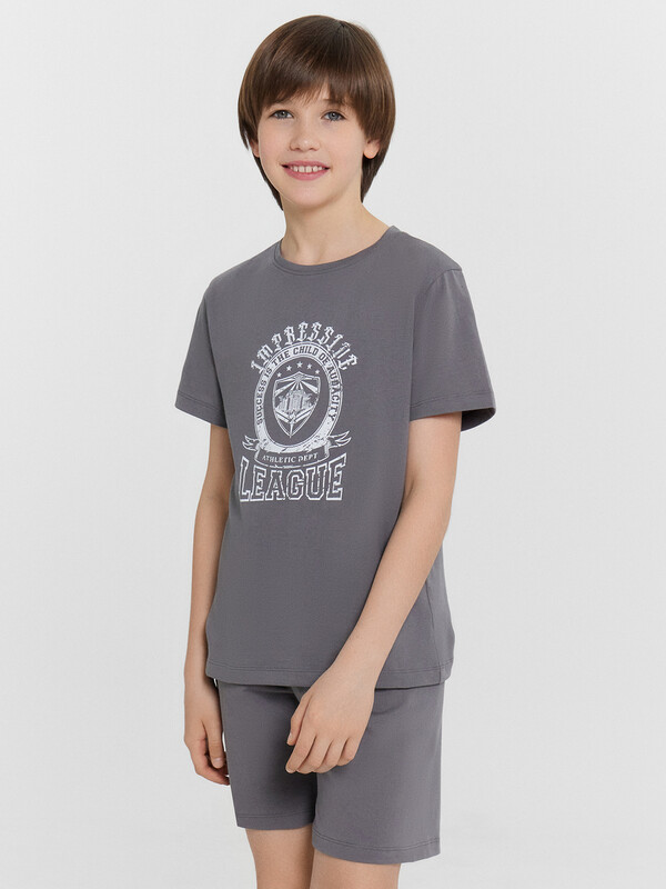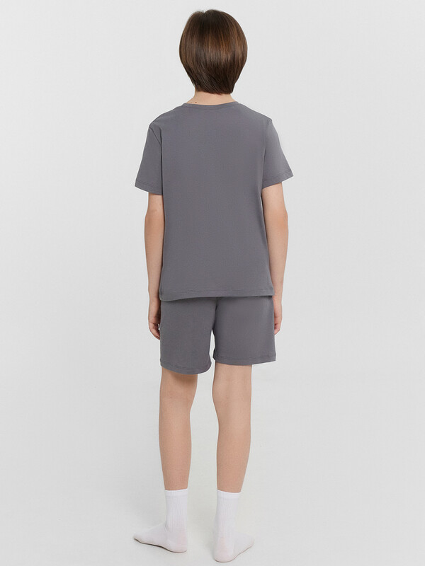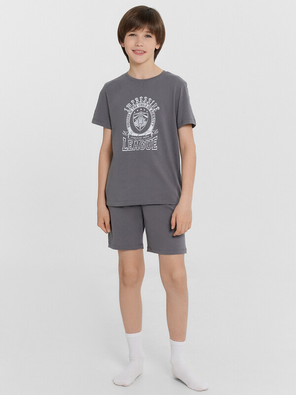 Пижама для мальчиков — идеальное сочетание комфорта и практичности для сна и отдыха! Комплект включает свободную футболку с круглой горловиной и короткими рукавами, обеспечивающую удобную посадку и комфорт в течение ночи. Шорты длиной до колен дополнены эластичной тесьмой в поясе, что позволяет регулировать посадку и гарантирует свободу движений. Изделие выполнено из хлопковой кулирки — мягкого и воздухопроницаемого материала, который приятно прилегает к коже и дарит ощущение легкости. Такая ткань обеспечивает уют и комфорт в любую погоду. Этот комплект станет отличным выбором для спокойного сна и расслабленного домашнего отдыха, позволяя ребёнку чувствовать себя комфортно и свободно. Универсальная и удобная модель для повседневного гардероба!