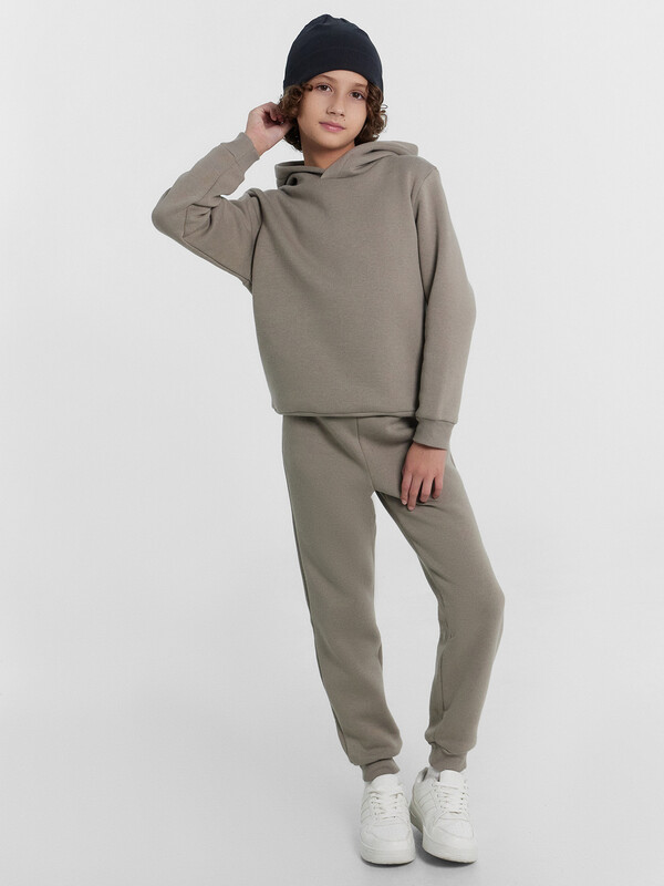 Стильный комплект из легкого трикотажного футера без подчеса. Включает худи свободного силуэта с капюшоном и брюки прямого силуэта с эластичной тесьмой и регулировочным шнурком в поясе. Линия плеча в худи немного спущена, что дарит свободу движений. Рекомендуем!