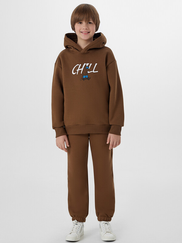 Стильный спортивный костюм для мальчиков, состоящий из худи и брюк. Худи оверсайз с капюшоном имеет длинные рукава со спущенной линией плеча и эластичными манжетами из рибаны. По низу изделия также вставка из рибаны, что добавляет дополнительный комфорт. Брюки прямого силуэта с эластичной талией на кулиске и карманами в боковых швах обеспечивают удобство и свободу движений. Костюм выполнен из футера без подчеса - трикотажного материала, отличающегося своей мягкостью и прочностью. Материал сохраняет легкость и воздухопроницаемость, что предотвращает перегрев и позволяет коже дышать. Этот материал также обладает отличной износостойкостью, что делает костюм идеальным для активных мальчиков. Комплект mark Formelle станет отличным выбором для создания стильного и удобного образа на каждый день!