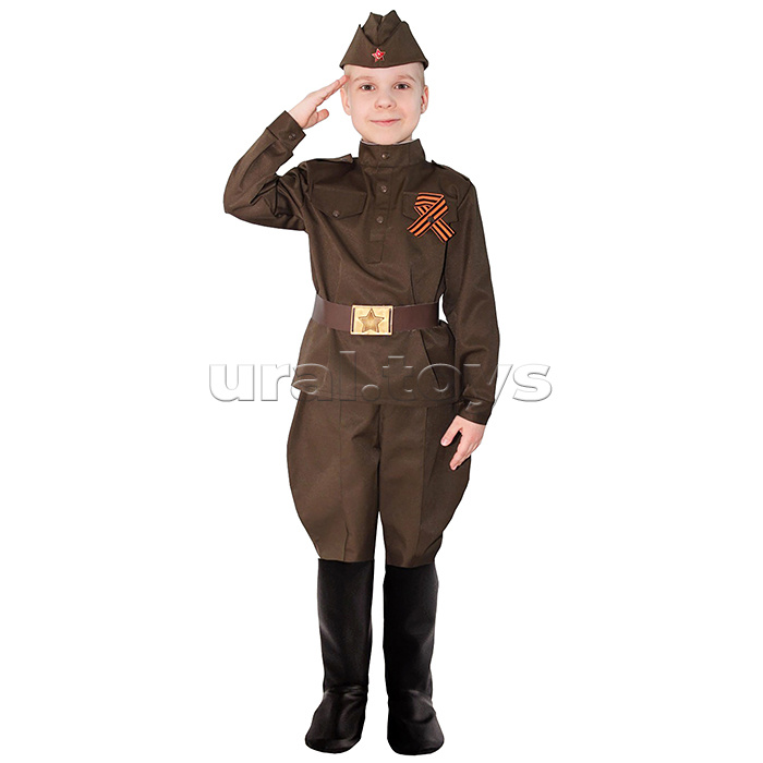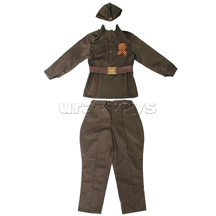 Код: 353697 Штрихкод: 4607118511723 Страна производитель: Россия Размеры упаковки: 36 x 28 x 3 см Количество в коробке: 10 • В наборе: пилотка, гимнастёрка, брюки, ремень. • Размер: 134. • Возраст: 9 лет. • Состав: полиэстр, х/б. • Рекомендуется ручная стирка при температуре 30 градусов. • Не рекомендовано детям до 3-х лет. • Соответствует требованиям ТР ТС 008/2011 "О безопасности игрушек". Комментарии к товару