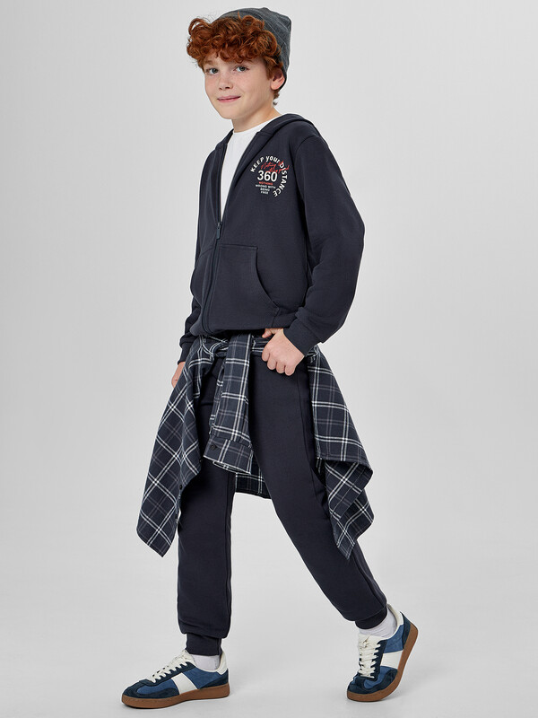 Худи свободного кроя с капюшоном и молнией защищает от ветра, а практичный карман-кенгуру позволяет хранить мелочи. Брюки прямого силуэта с эластичным поясом и регулировочным шнурком обеспечивают идеальную посадку для любых активностей — от игр на улице до занятий спортом. Этот костюм подойдет для прогулок, школы или отдыха. Если вы ищете, где купить детский спортивный комплект, который сочетает натуральные материалы, продуманный крой и яркий дизайн, этот набор станет отличным выбором. 100% хлопок Комментарии к товару
