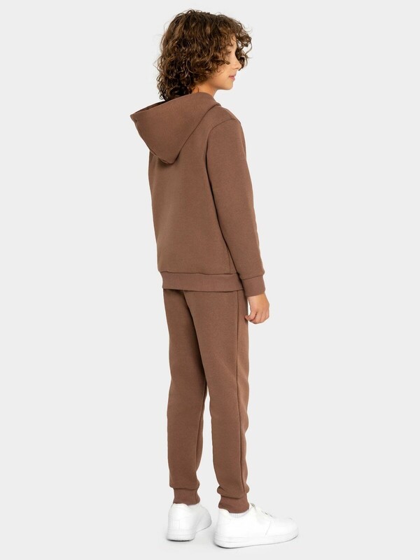 Комфортный комплект для мальчиков из трикотажного футера с теплым подчесом. Включает худи на молнии свободного силуэта с капюшоном и брюки прямого силуэта с эластичной тесьмой и регулировочным шнурком в поясе. Линия плеча жакета немного спущена, что дарит свободу движений. Практичности добавляет карман-кенругу. Рекомендуем вашему мальчику!