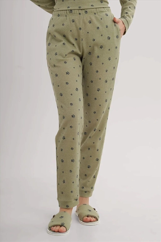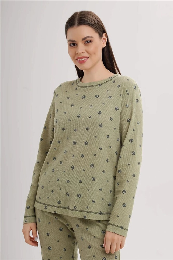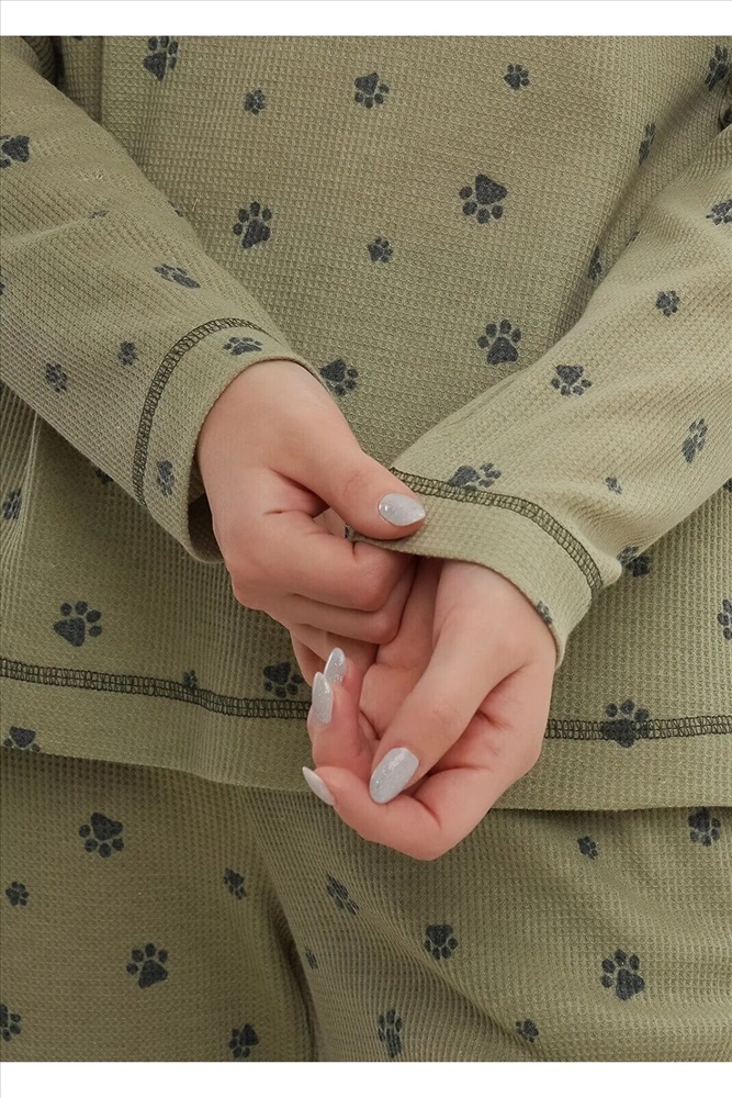 Набор одежды из трикотажного полотна "вафелька". Фуфайка прямого силуэта.По горловине обтачка. Втачной длинный рукав. По горловине,низу изделия и рукавов застил. Брюки с притачным поясом на внутренней резинке. Боковые карманы в швах. По низу брюк манжет.