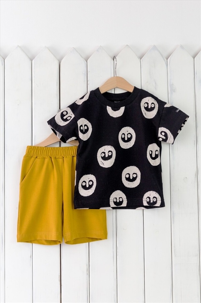 ID товара: 1030115 Акции: -5%, до 24.11.2025 Состав: 95% Хлопок, 5% Эластан Сезон: Весна/Лето Длина: Средняя Фасон: Прямой Рукав: короткие Крой брючин: Прямой Рисунок: Фантазийный Тип карманов: В шве Декоративные элементы: Принт Основная ткань: Хлопок Стиль: повседневный Страна бренда: Россия Страна производства: Россия Комплект для мальчика. Футболка выполнена из принтованной кулирки (100% хлопок), шорты с боковыми карманами выполнены из эластичной кулирки (95% хлопок, 5% эластан). Комментарии к товару