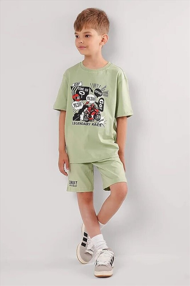 ID товара: 1217552 Состав: 100% Хлопок Сезон: Весна/Лето Длина: Средняя Фасон: Прямой Рукав: Короткие Крой брючин: Прямой Рисунок: Надпись Декоративные элементы: Принт Основная ткань: Хлопок Стиль: Повседневный Страна бренда: Россия Страна производства: Россия Комплект из футбоки и шорт для мальчика. Футболка из 100% хлопка, украшена крутым принтом!Стильные базовые шорты из натурального трикотажного полотна отлично подойдут для занятий спортом и повседневной носки. Комментарии к товару