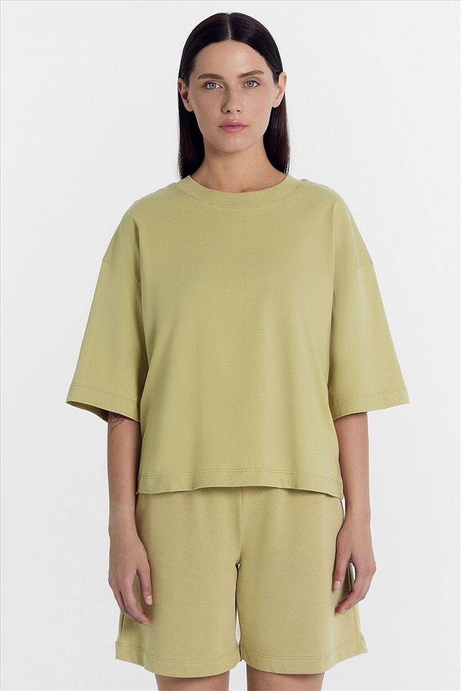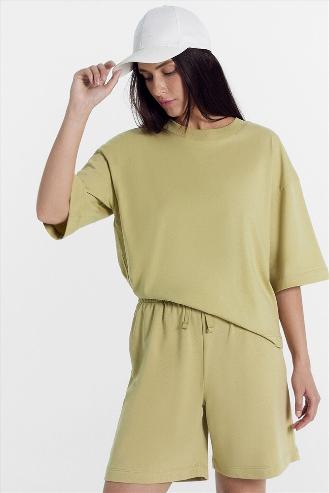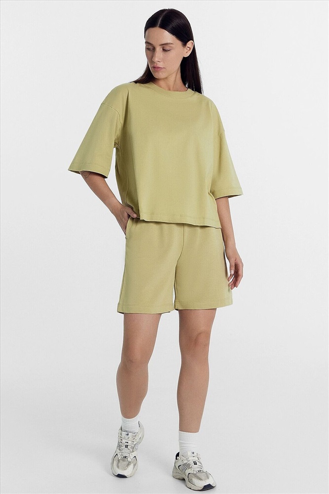 ID товара: 1041784 Состав: 84% Хлопок; 16% Полиэстер Сезон: Весна/Лето Длина: Средняя Рукав: короткие Вид застежки: Без застежки Тип карманов: В шве Декоративные элементы: Без элементов Утеплитель: Без утепления Основная ткань: Хлопок Стиль: повседневный Покрой: оверсайз Уход: Деликатная стирка при 30 градусах Модель брюк: Шорты Фактура материала: Кулирное полотно+футер Страна бренда: Беларусь Страна производства: Беларусь Новинка из коллекции MF Premium — комплект женский из высококачественного хлопка. Состоит из оверсайз футболки и шортов. Идеален на теплый период года. Футболка свободная, горловина круглой формы. Плечо модели спущено, пройма углублена. Рукав удлиненный. Шорты широкие с эластичной тесьмой в поясе. В боковых швах есть функциональные карманы для мелочей. Спортивный комплект — отличный выбор на каждый день для создания оригинальных образов. Широкий размерный ряд. Рекомендуем эту стильную базу из премиальной линейки для девушек, которые ведут активный образ жизни! Комментарии к товару