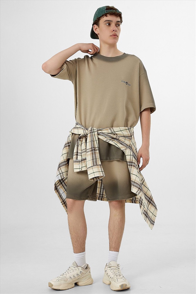 Однотонный мужской комплект из легкого хлопкового футера. Шорты прямые и свободные, длиной выше колена, с боковыми карманами и накладным сзади. Внутри пояса – эластичная тесьма и шнурок-завязка, который позволяет регулировать ширину в талии. Футболка прямая и свободная, со спущенной линией плеча и круглым вырезом. Рекомендуем!