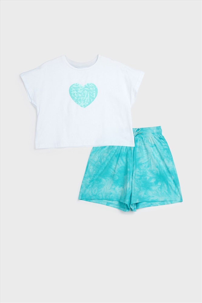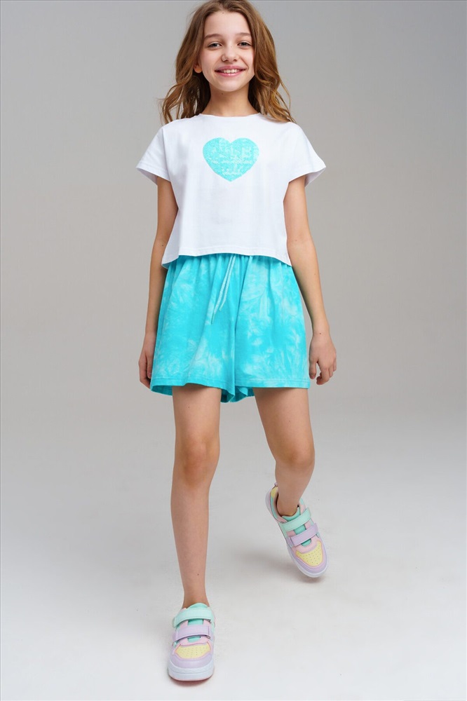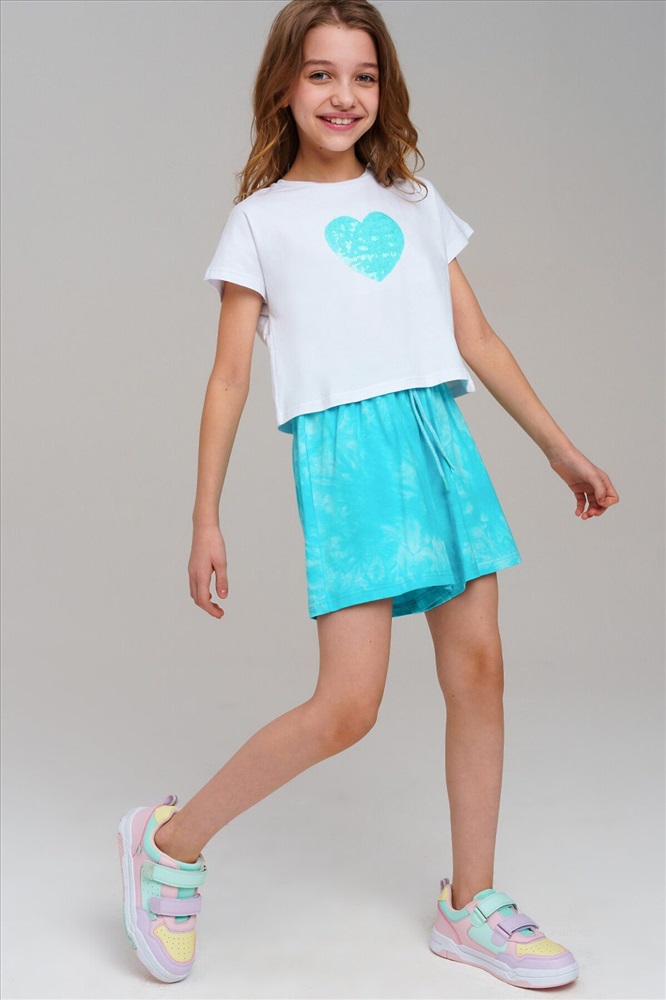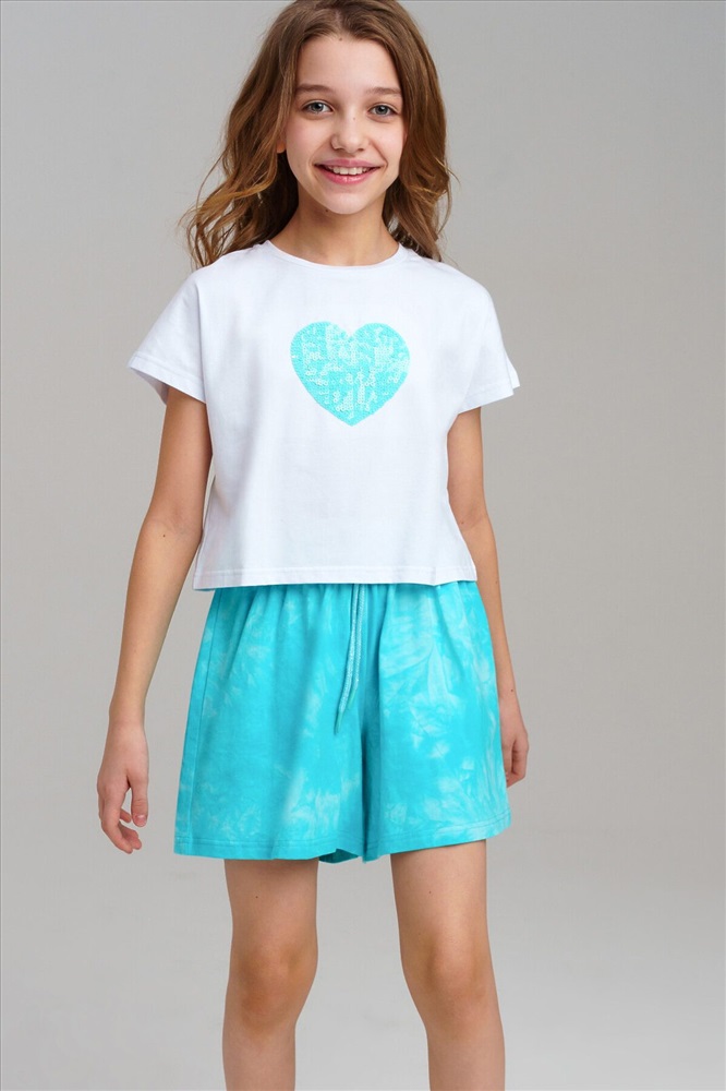 ID товара: 1121706 Состав: 95% Хлопок, 5% Эластан Сезон: Весна/Лето Длина: Средняя Фасон: Свободный Рукав: Короткие Вид застежки: Шнурок Крой брючин: Широкий Рисунок: Сердечки Декоративные элементы: Принт Основная ткань: Хлопок Стиль: Повседневный Страна бренда: Германия Страна производства: Китай Костюм для девочки подростка. Футболка, шорты из эластичного и приятного на ощупь трикотажа джерси. Шорты на резинке со шнурком. Высокое содержание хлопка. Модель выполнена из качественного и приятного на ощупь трикотажа. Комментарии к товару