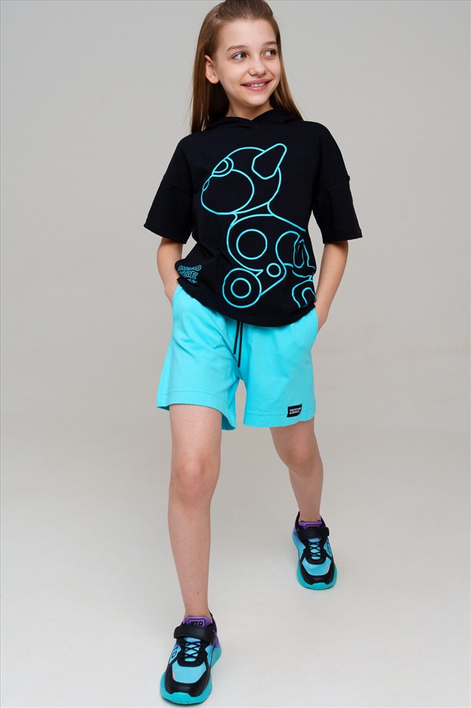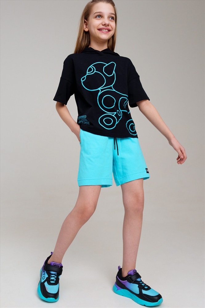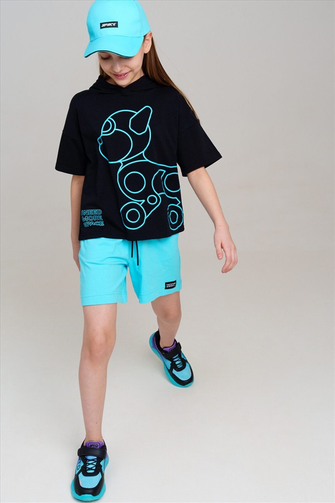ID товара: 1121775 Состав: 95% Хлопок, 5% Эластан Сезон: Весна/Лето Длина: Средняя Фасон: Свободный Рукав: короткие Вид застежки: Шнурок Крой брючин: Прямой Рисунок: Фантазийный Тип карманов: В шве Декоративные элементы: Принт Основная ткань: Хлопок Стиль: повседневный Страна бренда: Германия Страна производства: Китай Костюм для девочки подростка. Комплект: оверсайз футболка, шорты с высоким содержанием хлопка 95%. Благодаря наличию эластана в составе ткани изделие проще в уходе и держит форму. Шорты на резинке со шнурком. Боковые карманы. Модель выполнена из качественного и приятного на ощупь трикотажа. Комментарии к товару