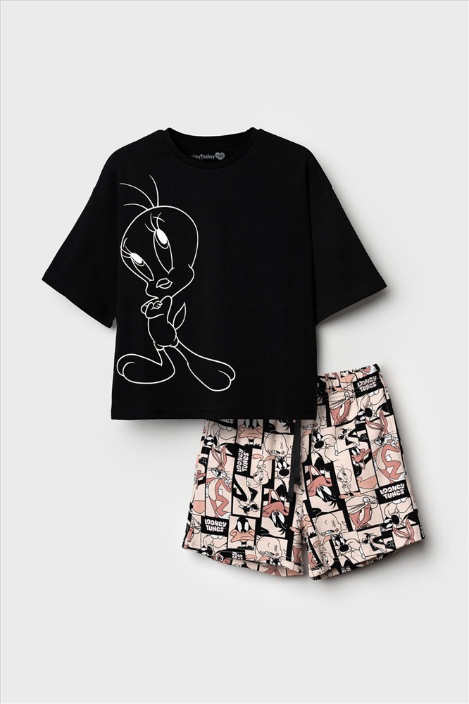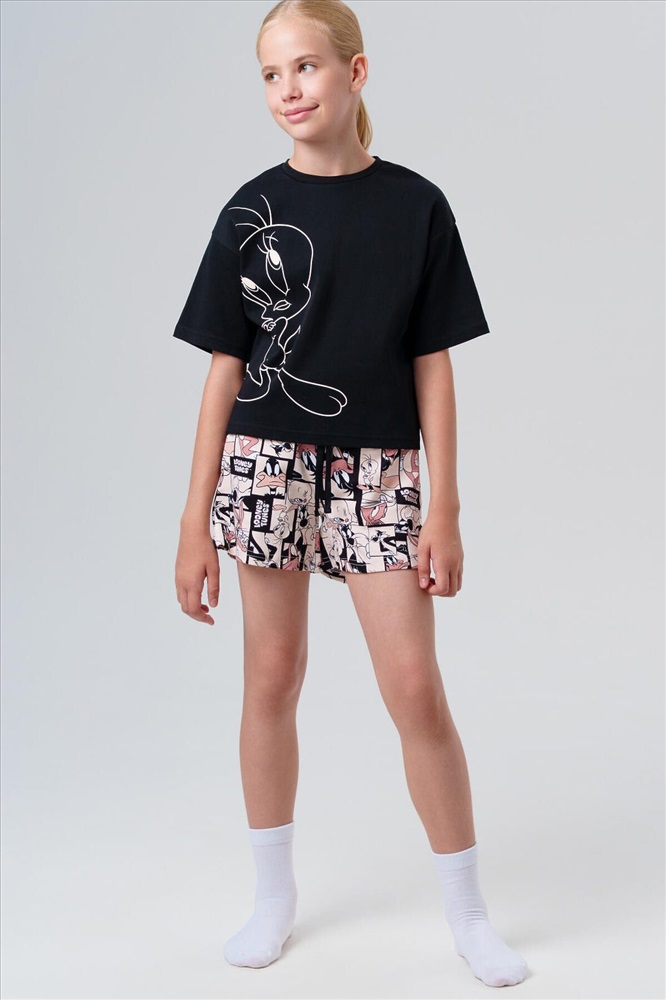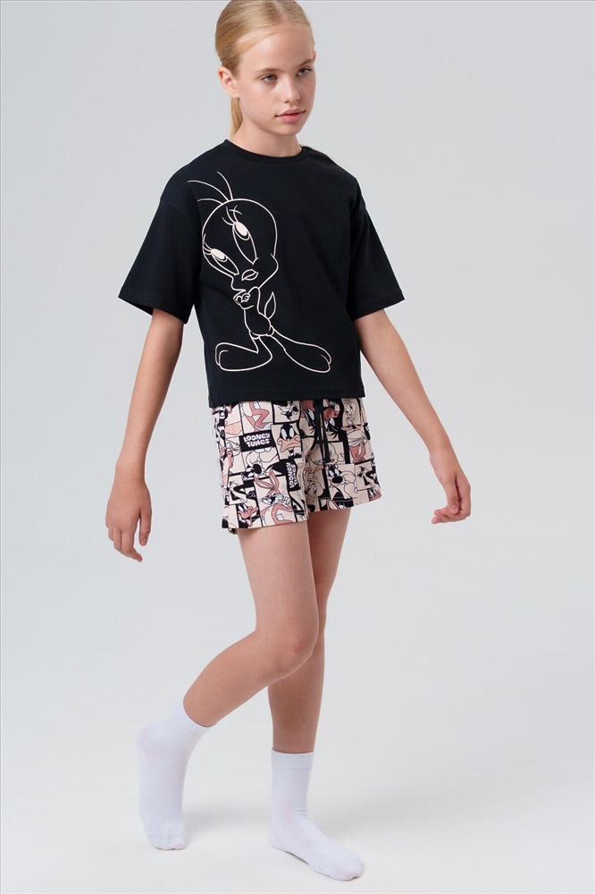 ID товара: 1185611 Сезон: Демисезон Длина: Средняя Фасон: Свободный Рукав: короткие Крой брючин: Широкий Рисунок: Фантазийный Декоративные элементы: Принт Страна бренда: Германия Страна производства: Китай Комплект трикотажный для девочек: фуфайка (футболка), шорты Комментарии к товару