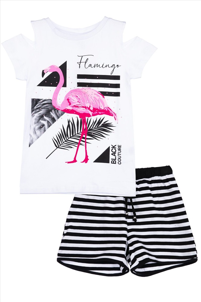 Комплект: футболка и шорты из качественного эластичного и приятного на ощупь трикотажа. Футболка декорирована аппликацией с реверсивными пайетками. Шорты с поясом на шнурке. Посадка regular fit – классический крой; высокое содержание хлопка 95%. Благодаря наличию эластана в составе ткани изделие держит форму и меньше мнется.