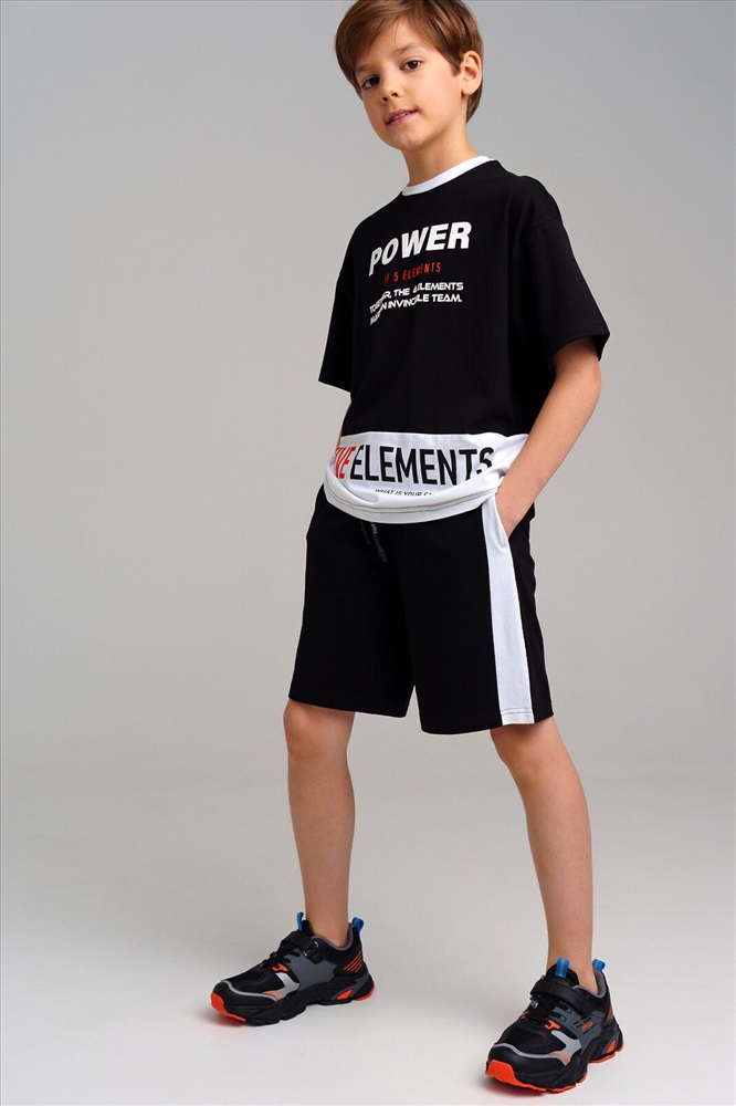 ID товара: 986240 Состав: 95% Хлопок, 5% Эластан Сезон: Весна/Лето Длина: Средняя Фасон: Прямой Рукав: короткие Крой брючин: Прямой Рисунок: Надпись Тип карманов: В шве Декоративные элементы: Принт Основная ткань: Хлопок Стиль: повседневный Страна бренда: Германия Страна производства: Китай Комплект: футболка и шорты из качественного эластичного и приятного на ощупь трикотажа. Посадка comfort fit – свободный крой. На шортах эластичный пояс со шнурком. Высокое содержание хлопка 95%. Благодаря наличию эластана в составе ткани изделие держит форму и меньше мнется. Комментарии к товару