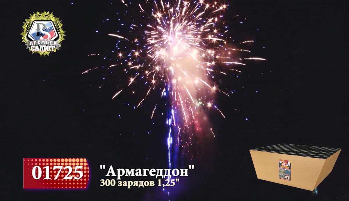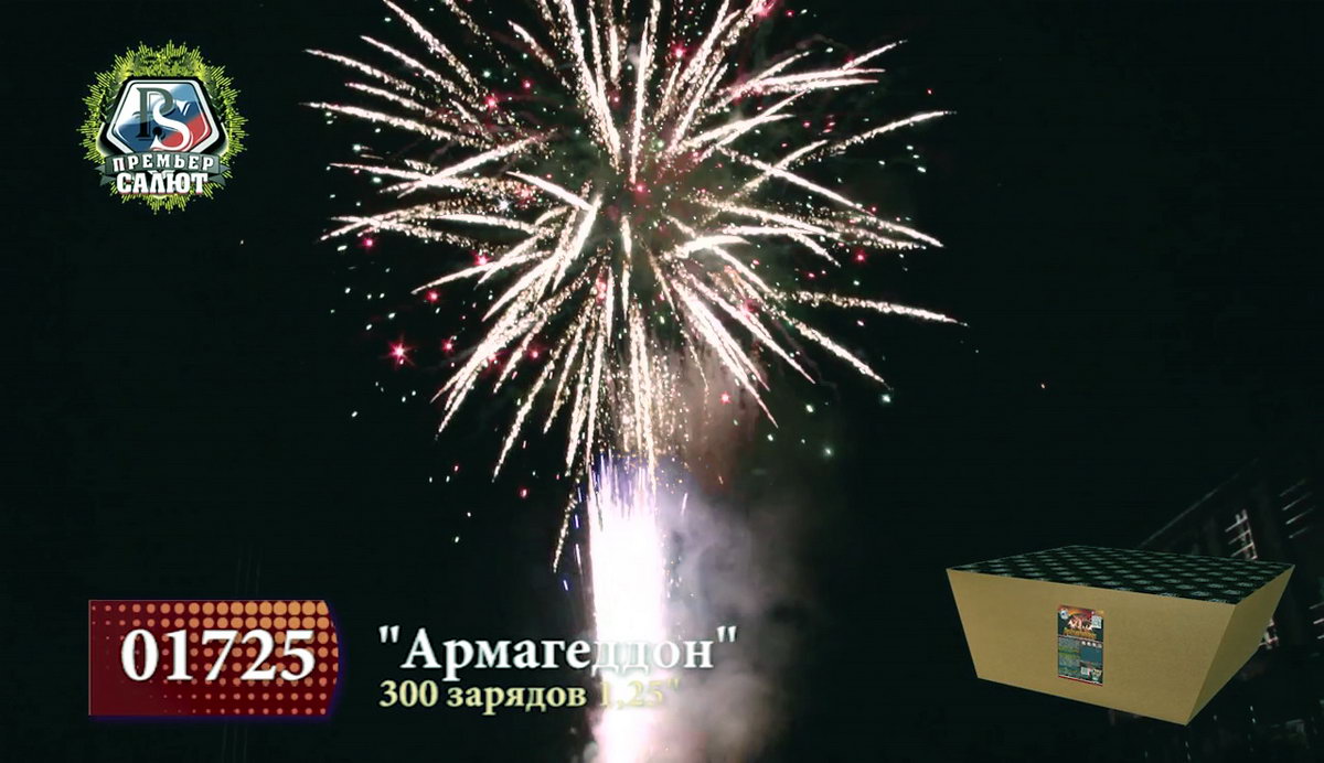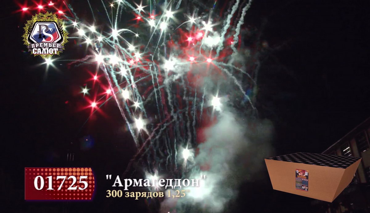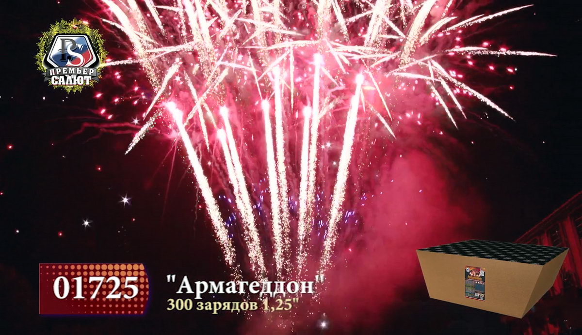 Калибр: 1.25 " Залпы: 300 Время работы: До 135 сек Высота фейерверка: До 30 м Веерный салют: Да Эффекты фейерверка: Веер Цвет: Золотой, Синий, Зеленый, Красный, Серебряный Размеры упаковки, мм: 560 х 495 х 490 Вес изделия, кг: 36.000 Фасовка: штука Число эффектов: 13 Описание: Обращаем Ваше внимание на то, что данный комплект состоит из двух отдельных батарей, которые соединяются коннектором. Проконсультируйтесь, пожалуйста, с нашим менеджером перед покупкой данного изделия. Эффекты: 1. Первая батарея: Красные звезды в серебряном мерцании; 2. Кокосы с пурпурными звездами в зеленом мерцании; 3. Зеленые кроссетты (Z-образный веер). 4. Синие жемчужины в серебряном мерцании (Z-образный веер). 5. Красные кроссетты, зеленые георгины в серебряном мерцании (Z-образный веер). 6. Золотые кометы с красными звездами на острие (Z-образный веер). 7. Золотые шипящие стрелы в красных пионах (панорамный веер). 8. Финал: панорамный веерный залп раскрывается титановыми хлопками. 9. Вторая батарея: Разноцветные звезды раскрываются разноцветными падающими листьями и пчелиными ульями. 10. Двухуровневый эффект: на нижнем уровне бурак синих звезд, на верхнем - золотые короны с синими жемчужинами в золотом мерцании. 11. Короны с пурпурными звездами в зеленом мерцании (V-образный веер). 12. По центру красные кроссетты, по сторонам золотые короны в синих жемчужинах (W-образный веер). 13. По центру красные кроссетты, по сторонам золотые короны в синих жемчужинах (Z-образный веер). Комментарии к товару