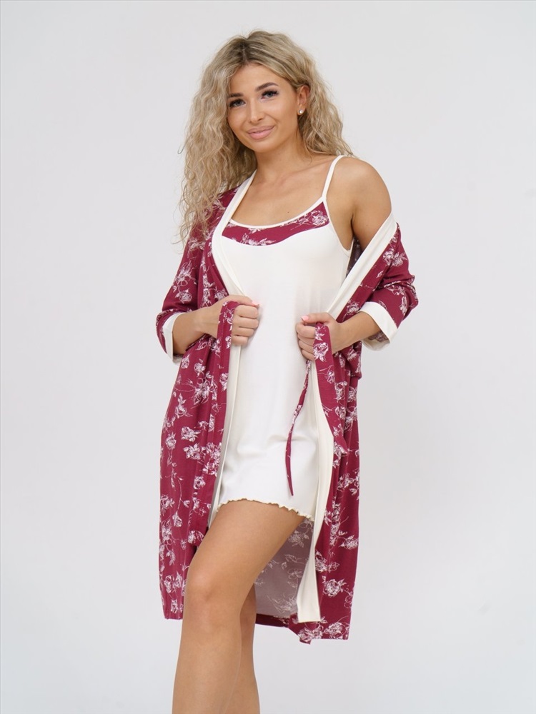 Комплекта состоит из невероятно женственной сорочки и элегантного, лаконичного халата, выполнен из нежной вискозы. Длина халата по спинке: 93-98 см Комментарии к товару