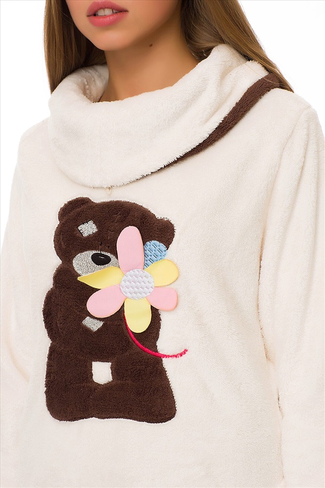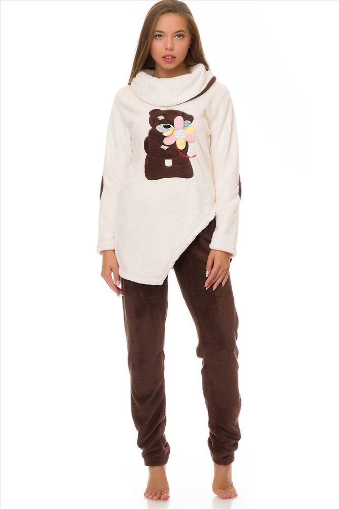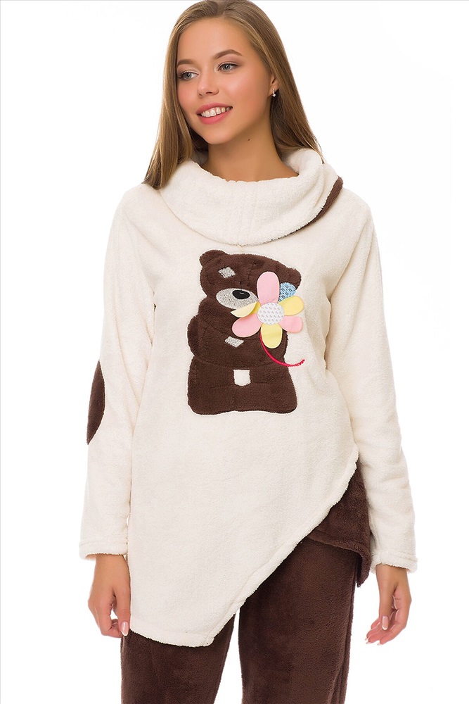 ID товара: 67841 Состав: Полиэстер 100% Сезон: Демисезон Длина: Средняя, Кофта 70 см. по спинке, брюки 80 см. по внутреннему шву Фасон: Прямой Рукав: Длинный, 56 см. Вид застежки: Нет Страна бренда: Турция Страна производства: Турция Теплый и уютный махровый костюм, выполненный из невероятно нежного и мягкого материала. Костюм состоит из кофты прямого кроя с ассиметричным низом, с воротником-хомут и аппликацией медвежонка Тедди спереди, а также брюк прямого кроя, с поясом на резинке. Незаменимая вещь для домашнего гардероба. Комментарии к товару